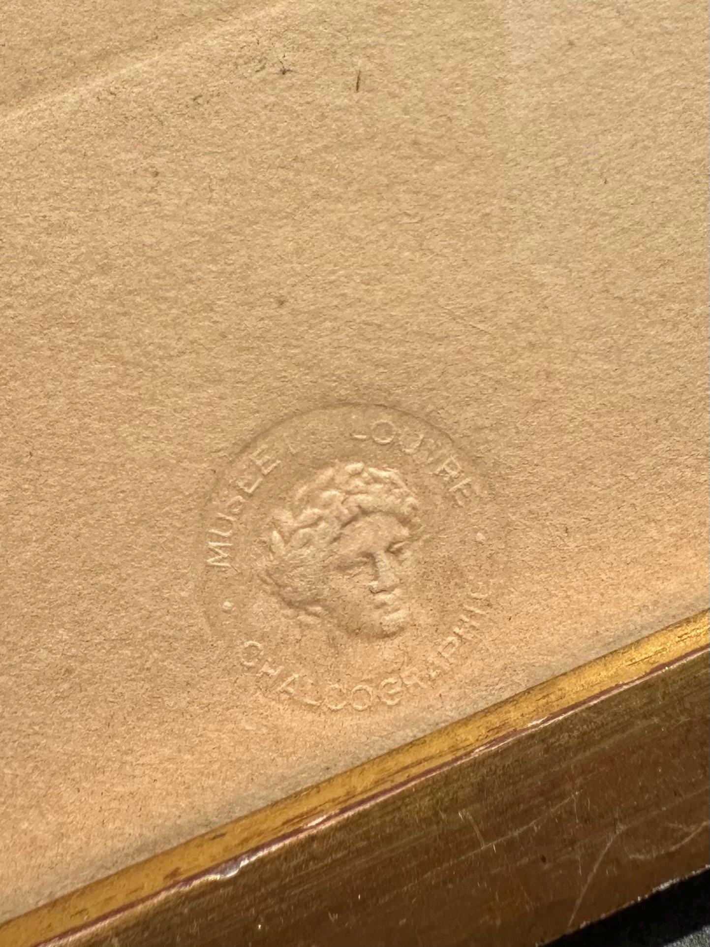 Bottom of engraving has a Musee du Louvre issued embossed seal, “MUSEE LOUVRE CHALCOGRAPHIE”.