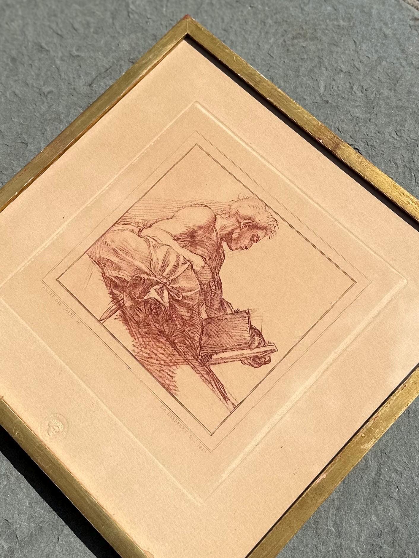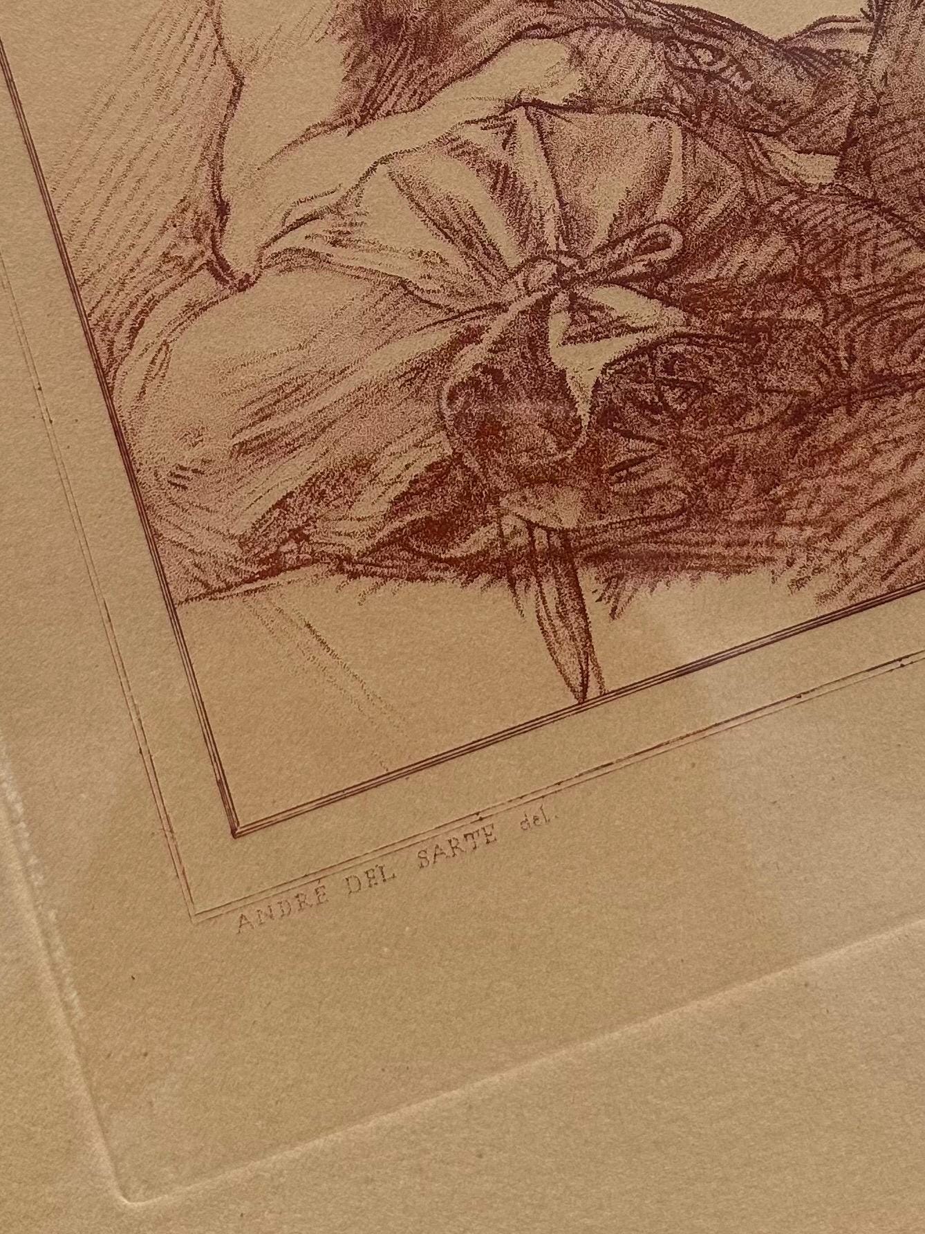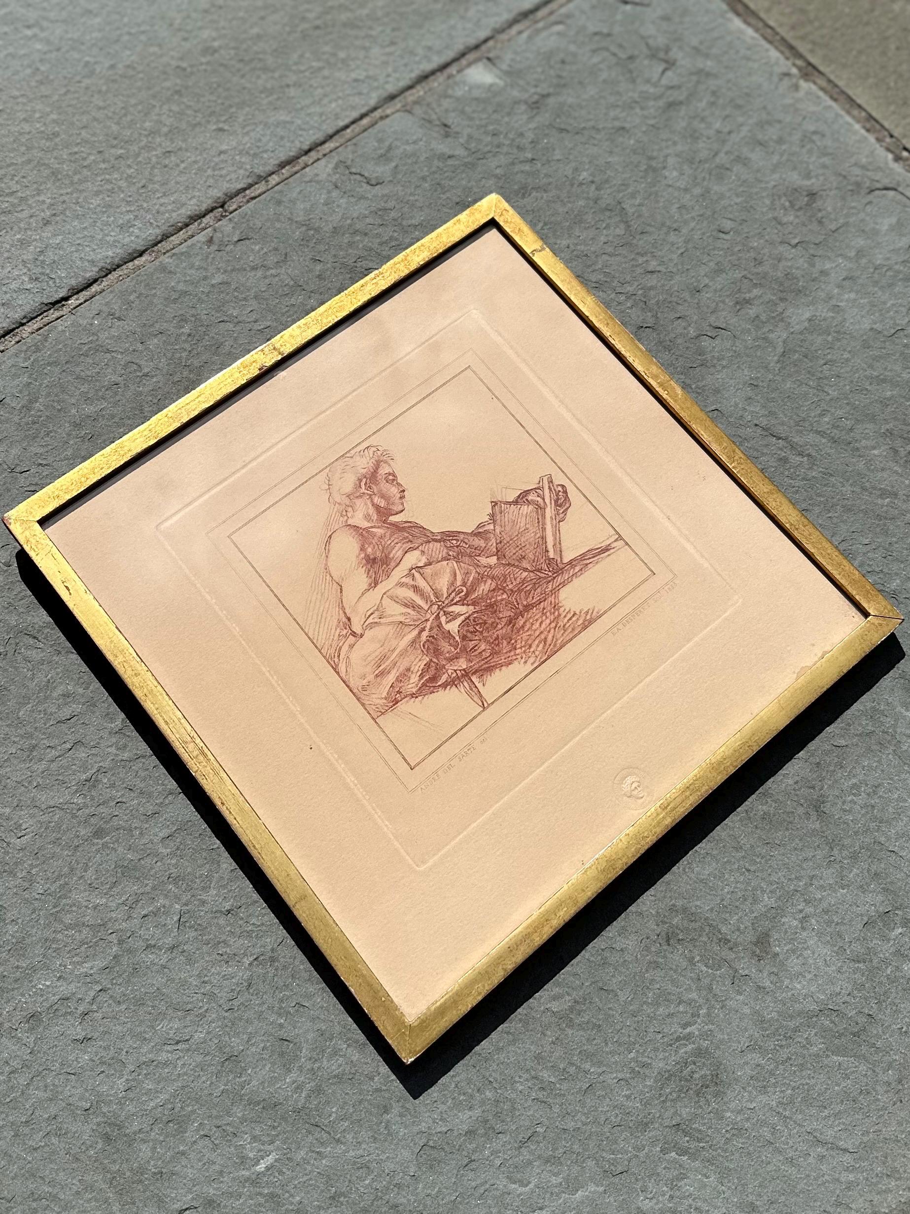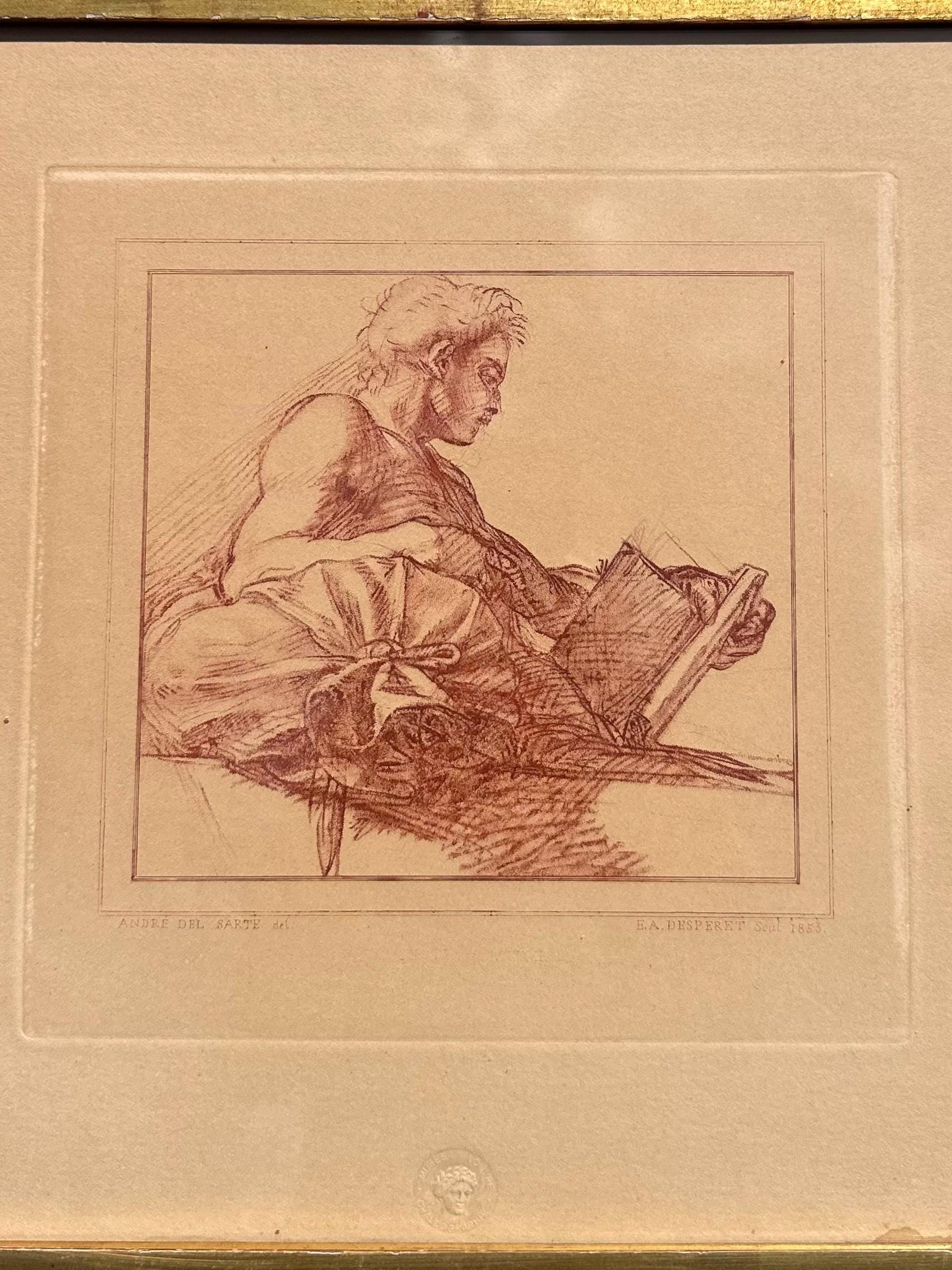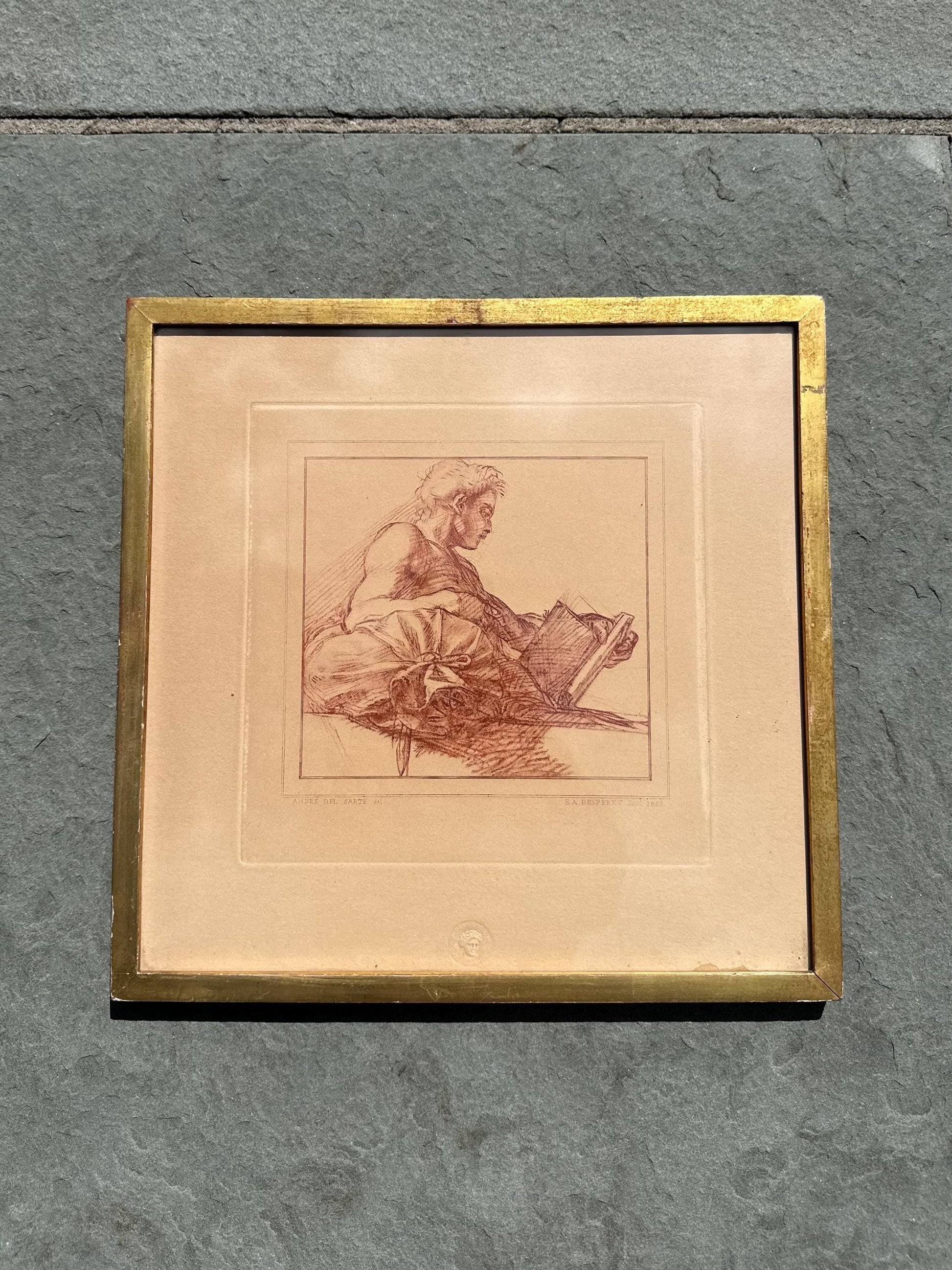 Vintage Framed French Engraving Andre del Sarte Bust of a Man E.A. Desperet 1853