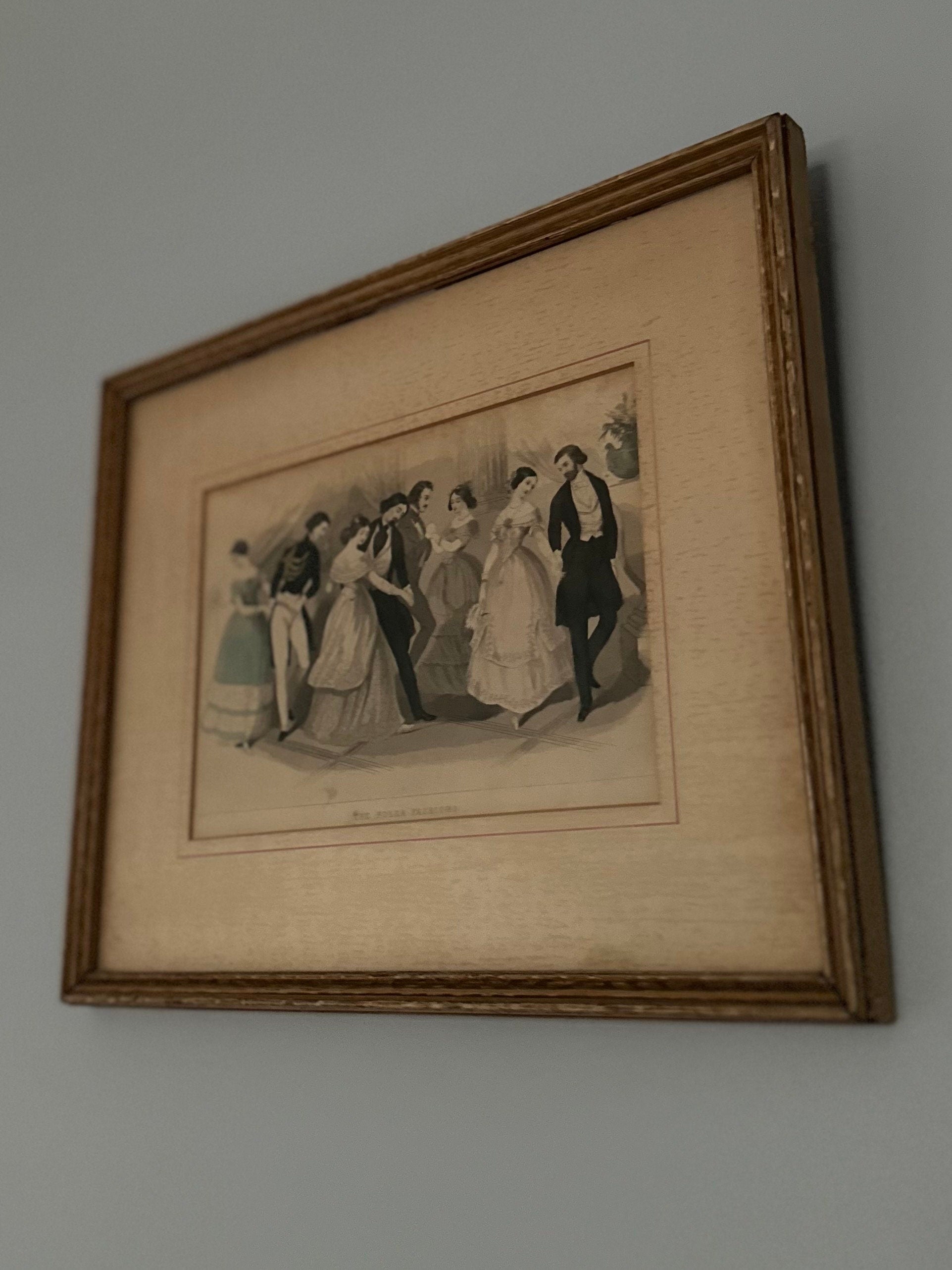 Vintage Framed & Matted Circa 19th Century Polka Fashions Victorian Dancing Lithograph Print