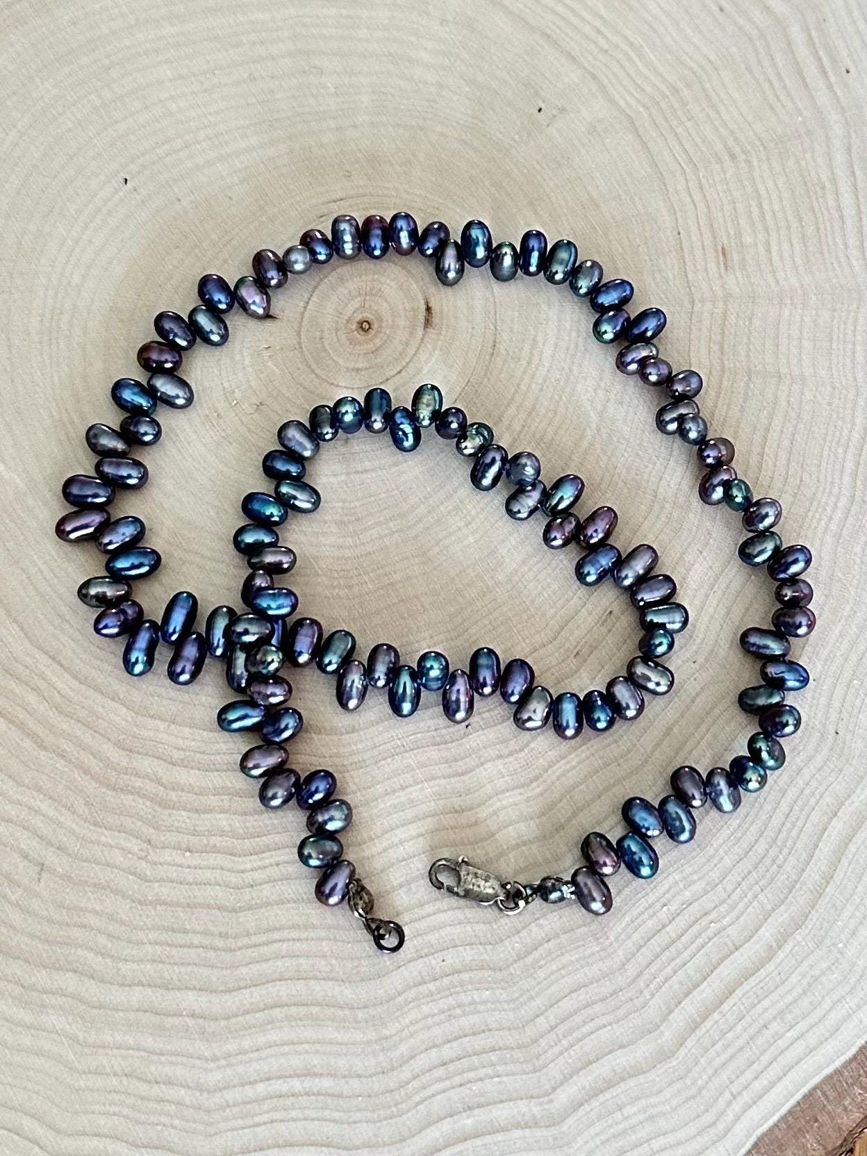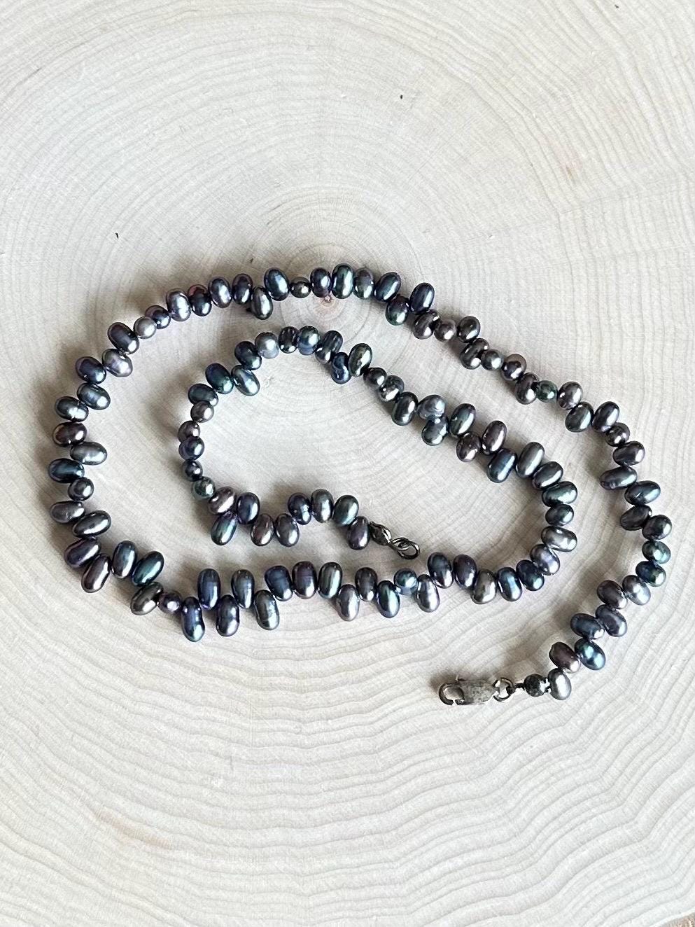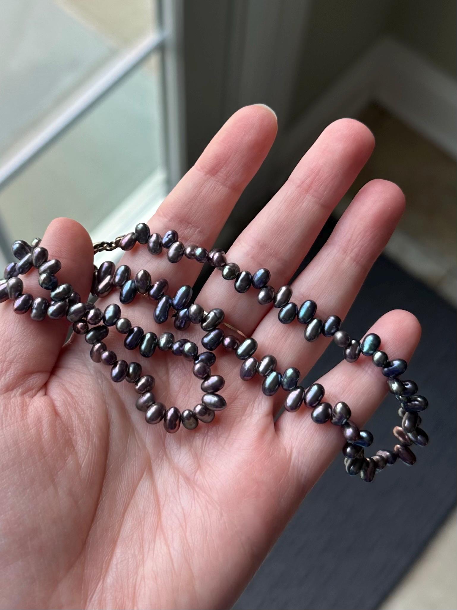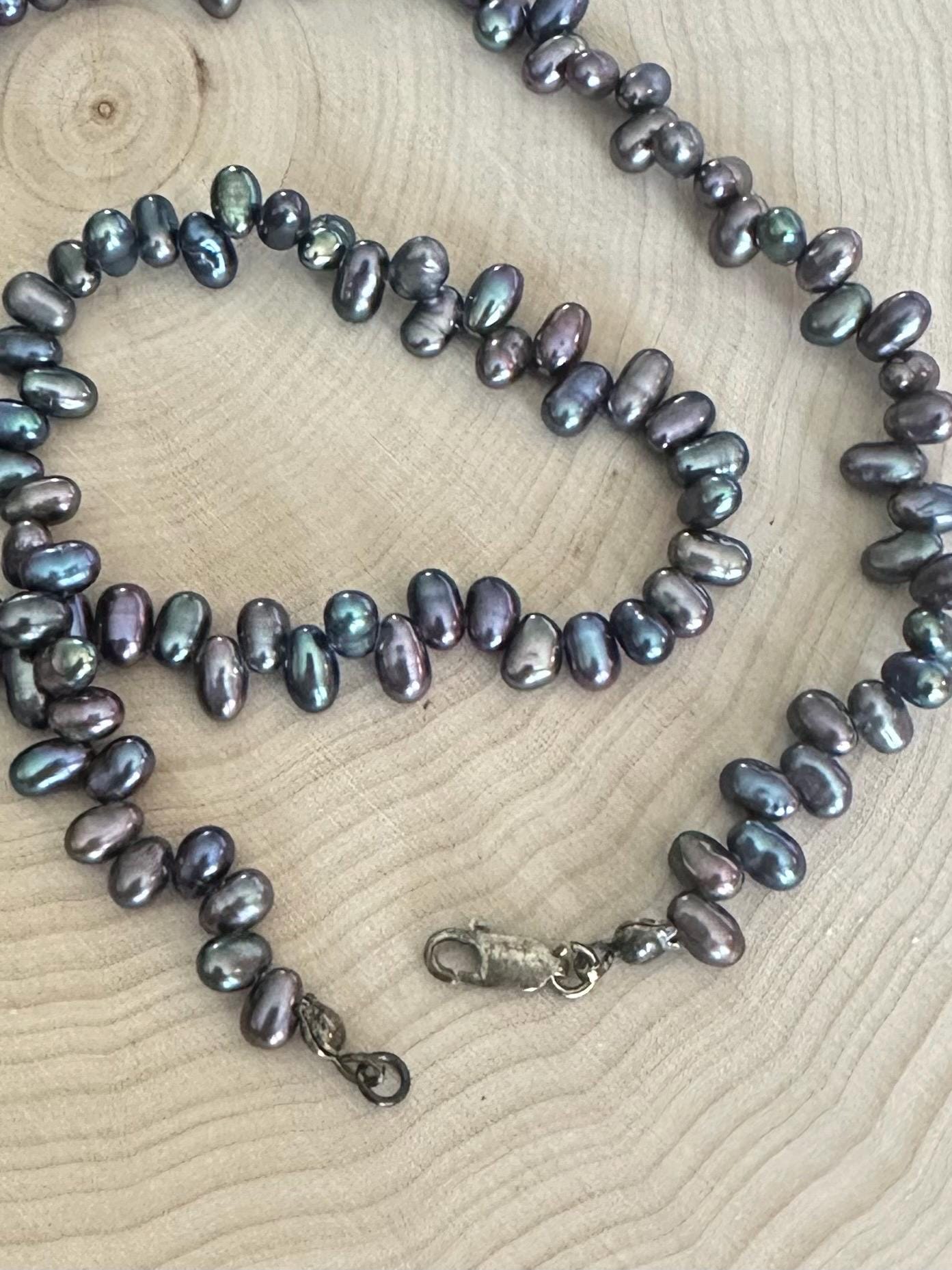 Vintage Genuine Black Freshwater Pearl Beaded Sterling Silver 925 Necklace 16.75”