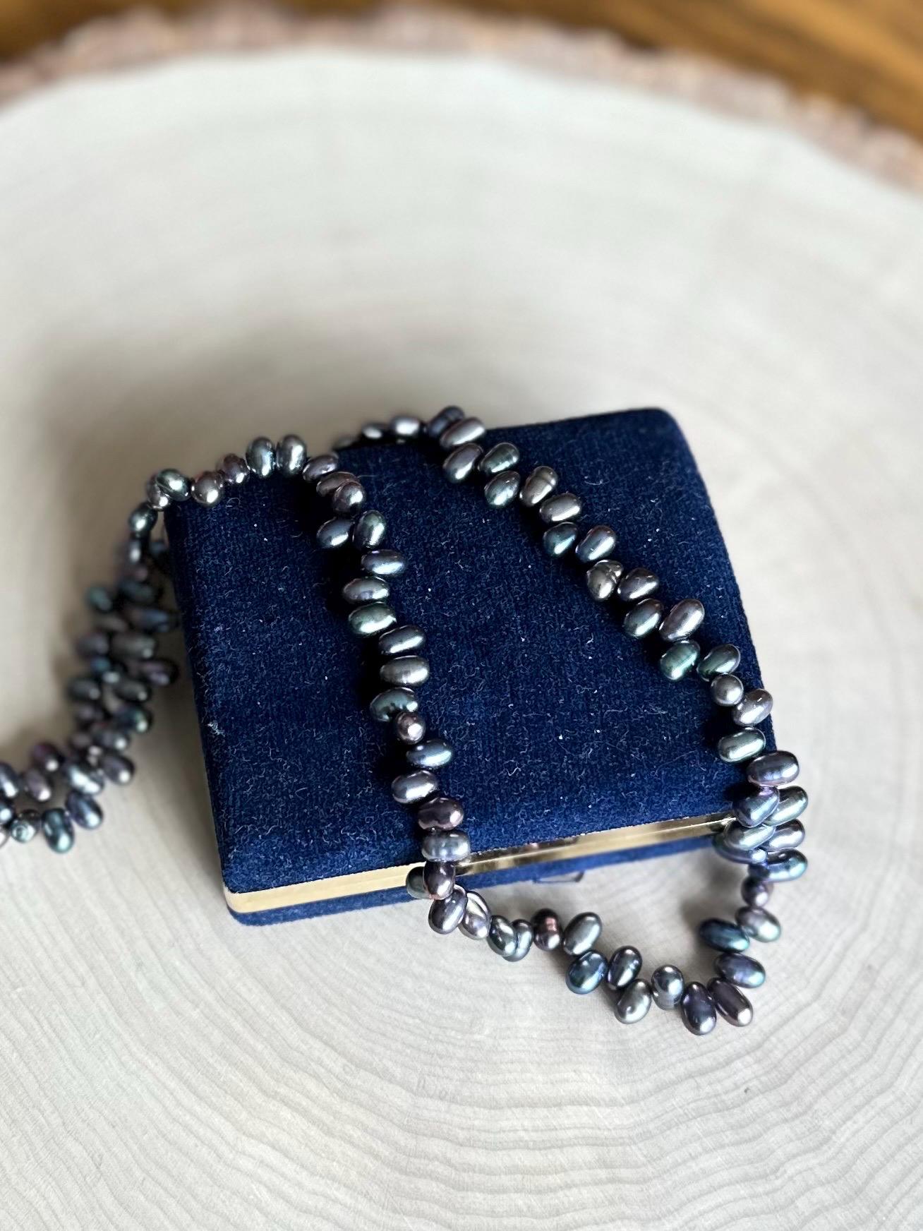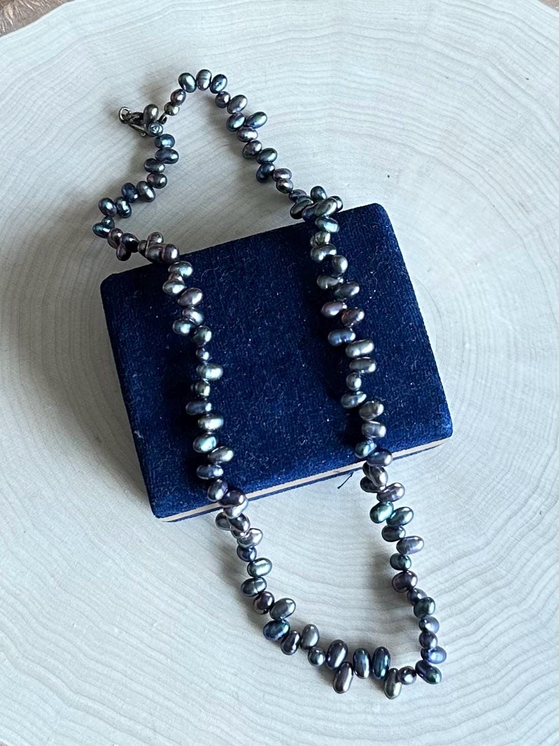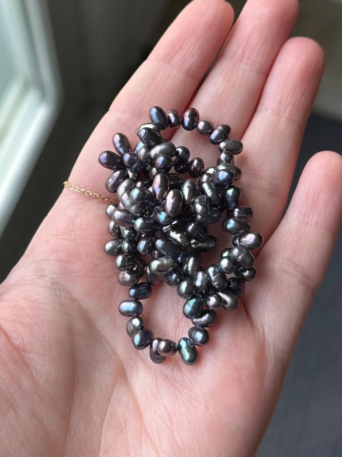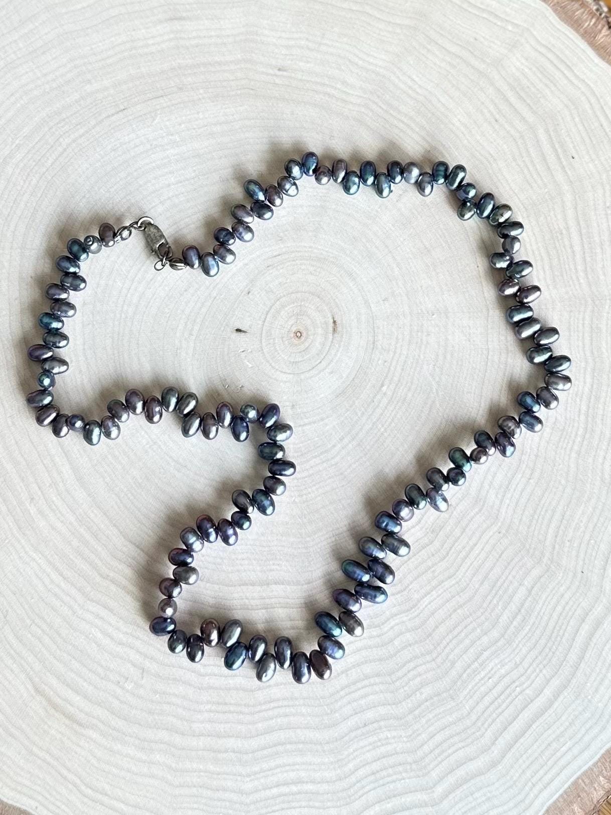 Vintage Genuine Black Freshwater Pearl Beaded Sterling Silver 925 Necklace 16.75”