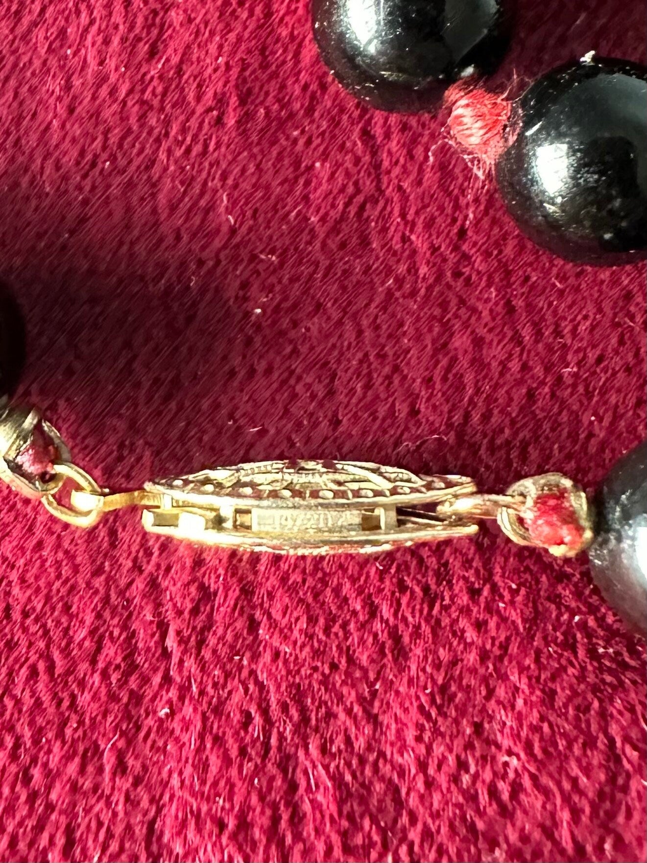 Vintage Genuine Black Onyx & Carnelian Beaded 1/20 14k GF Gold Filled Necklace Fish Hook Clasp