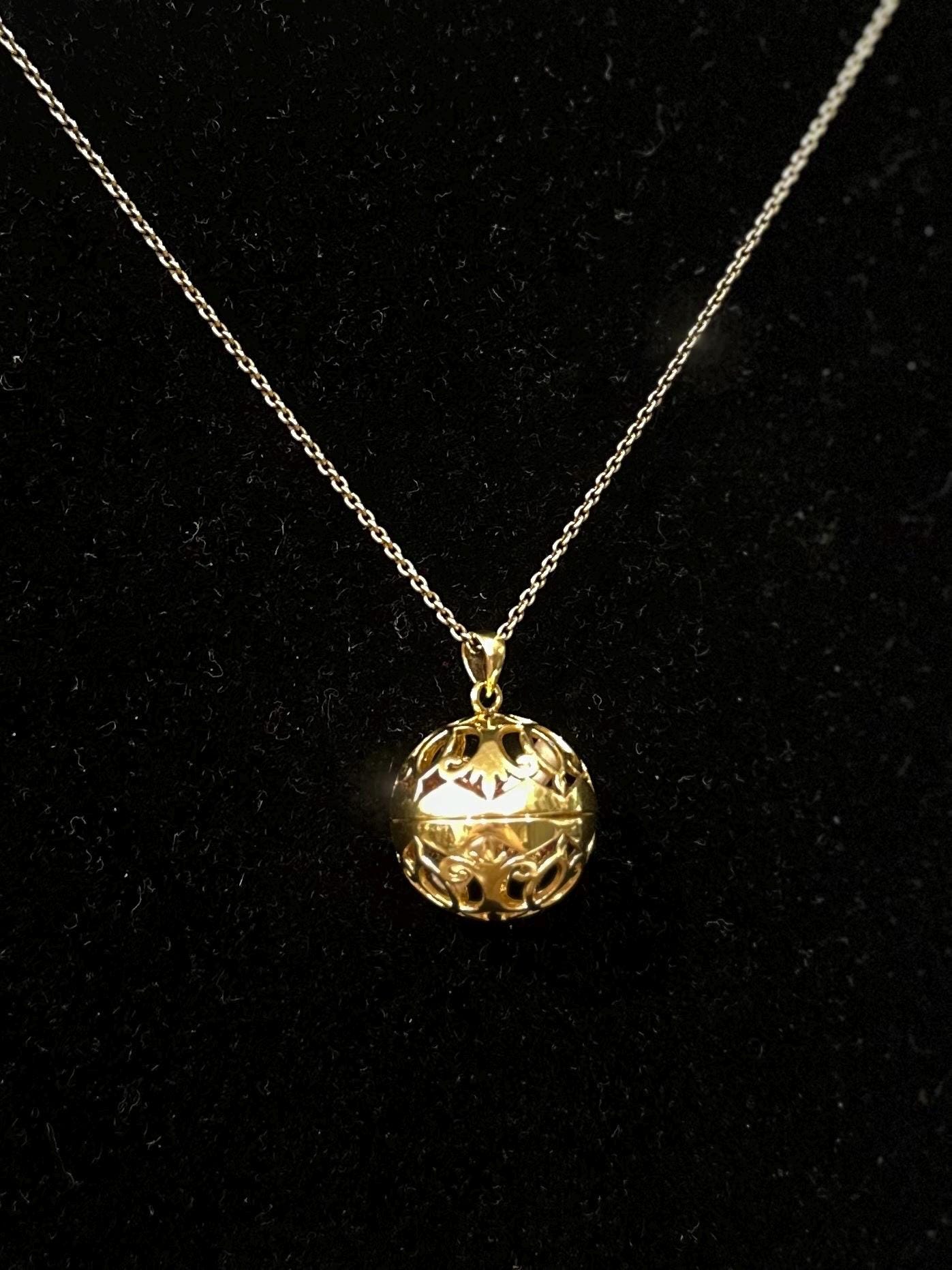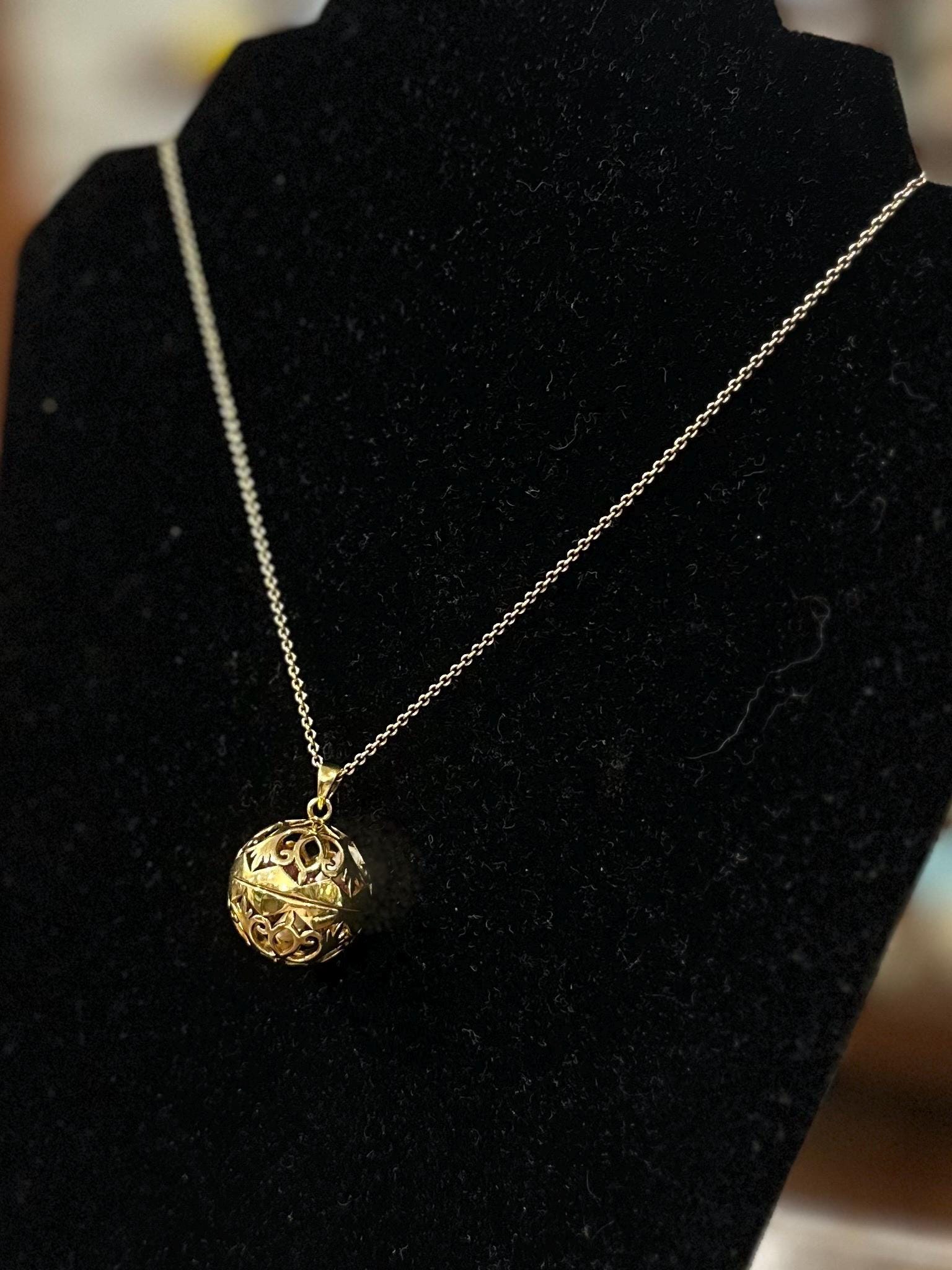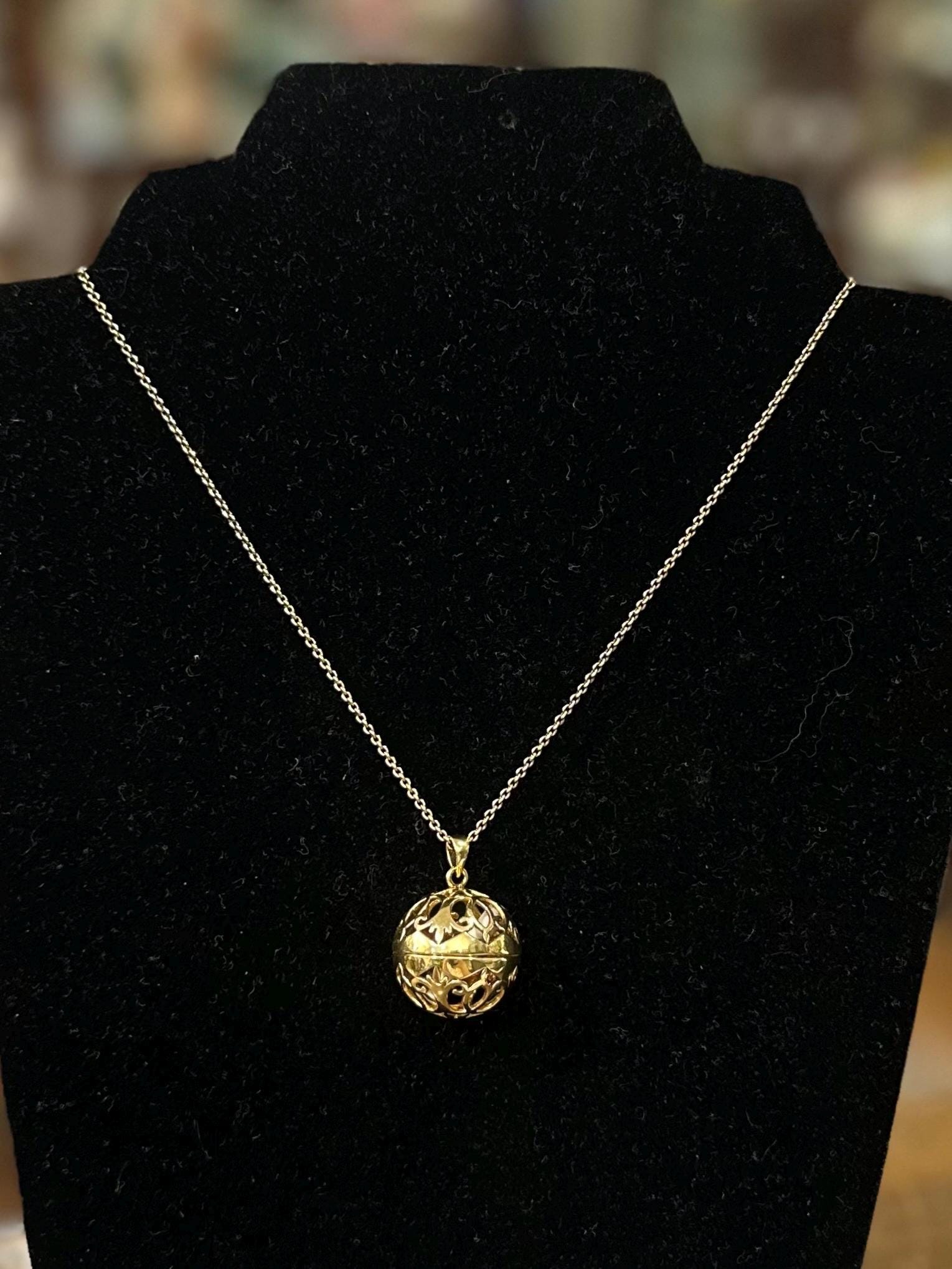 Vintage Gold Plated Sterling Silver 925 Orb Pendant Necklace with Blank Scroll Inside