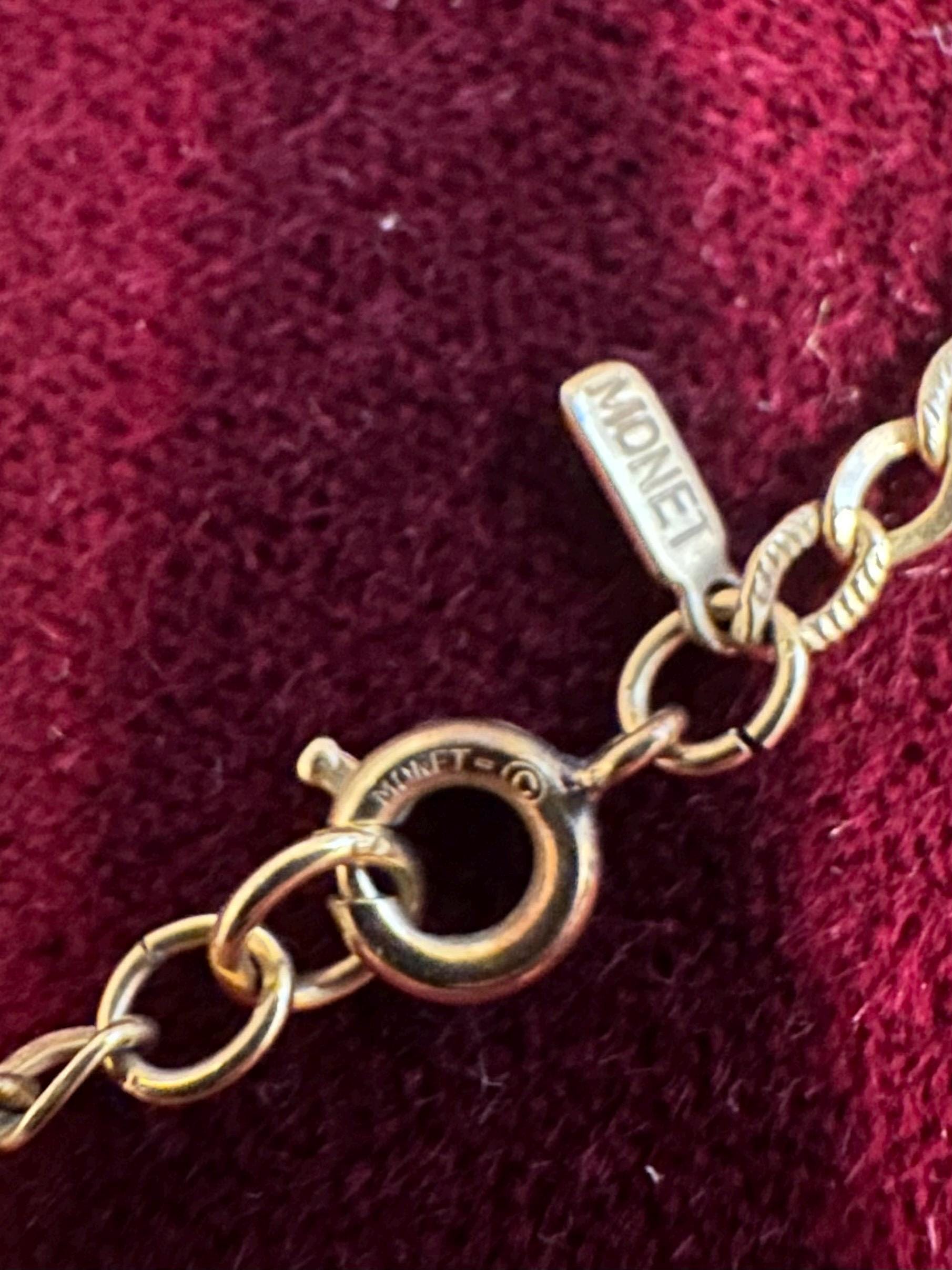 Clasp of chain is marked “MONET” and also has a “MONET” hang tag. Pendant is unsigned.