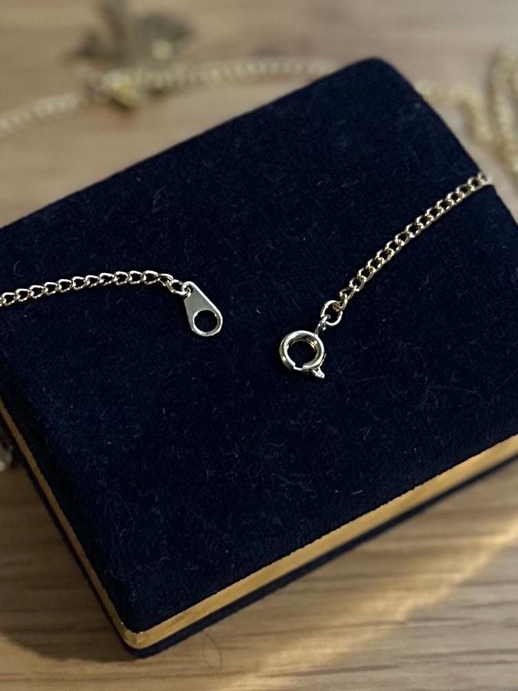 Chain measures approximately 17.75 inches long and has a spring ring clasp. Pendant measures approximately 0.75 inch long by 0.75 inch wide.