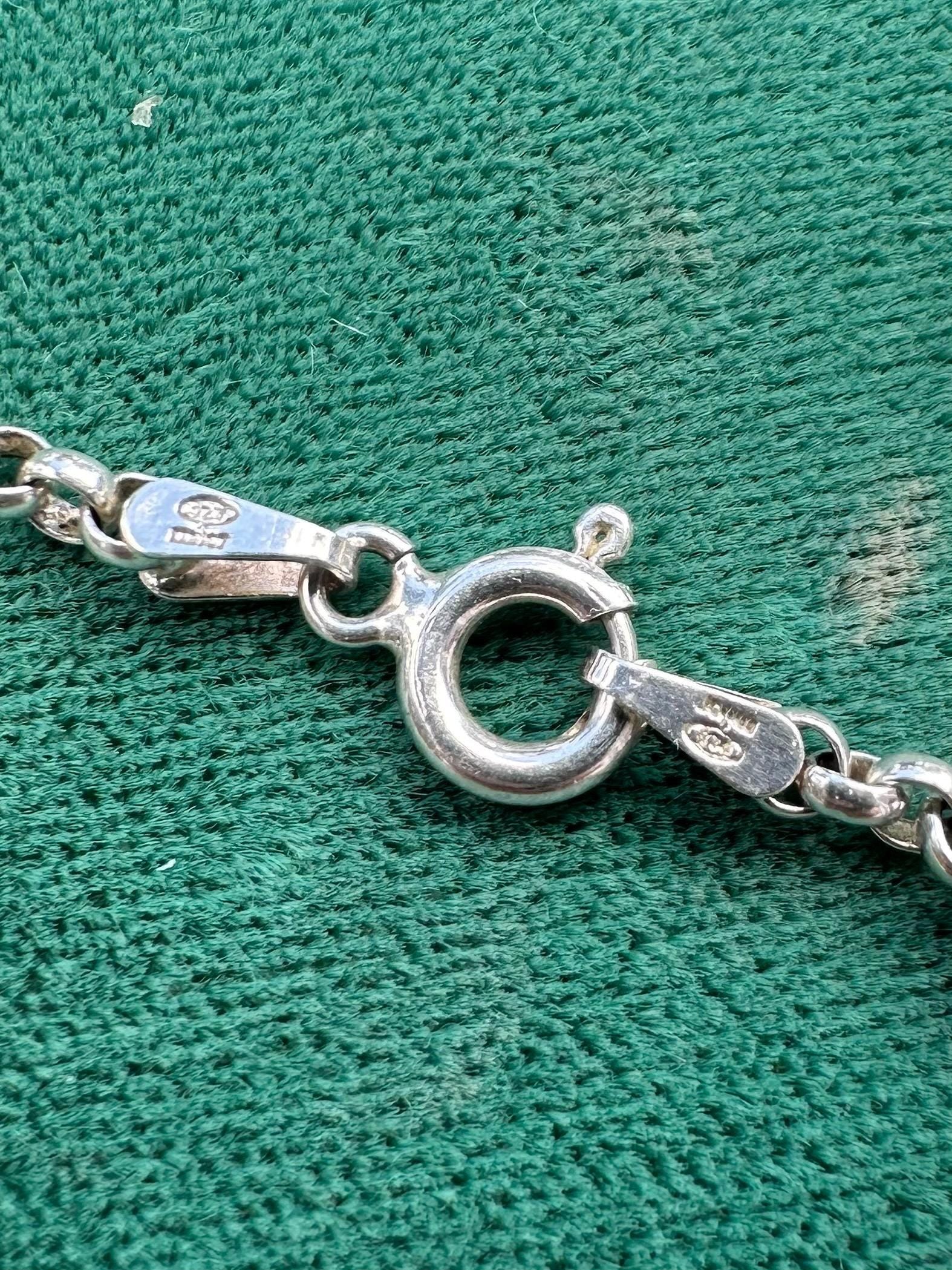 Chain measures approximately 36 inches long and has a spring ring clasp. Clasp is stamped "925" & "MADE IN ITALY".