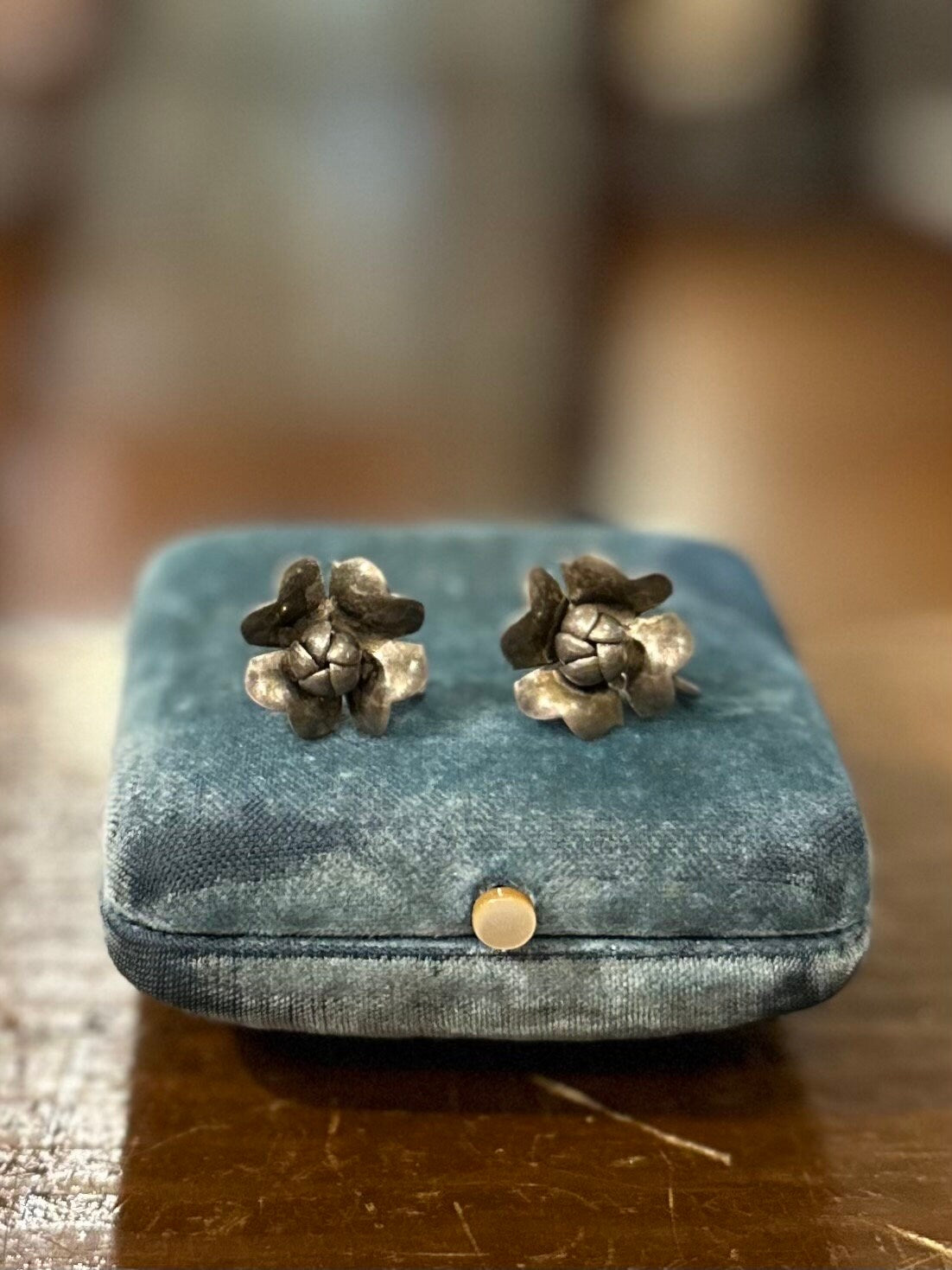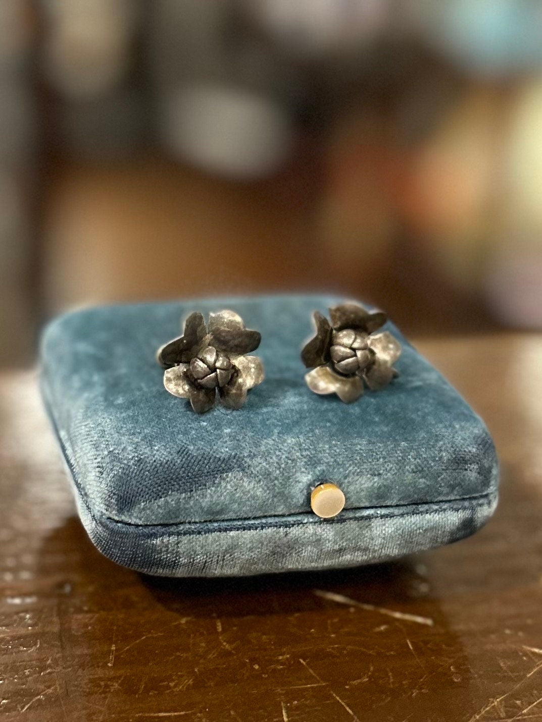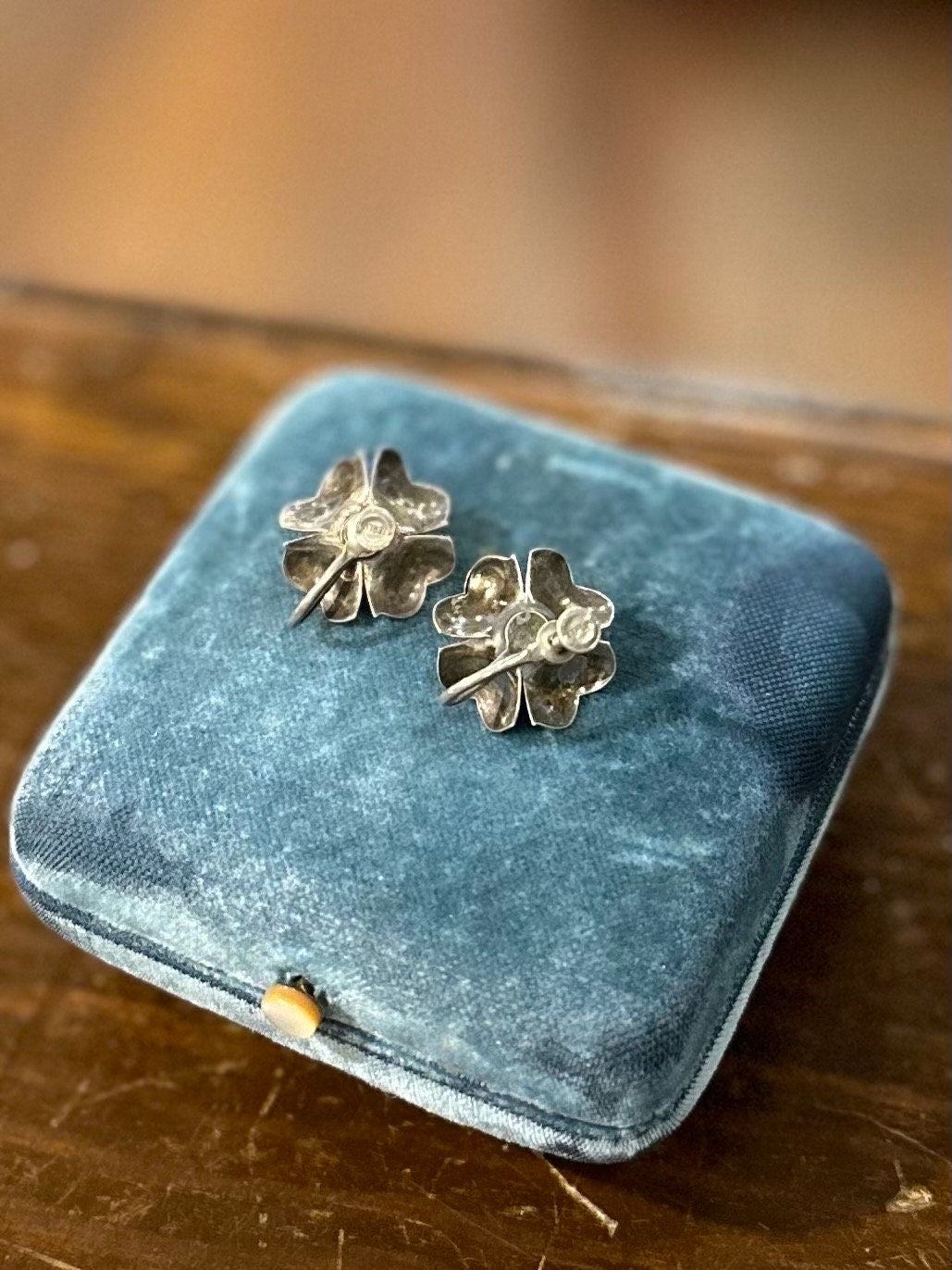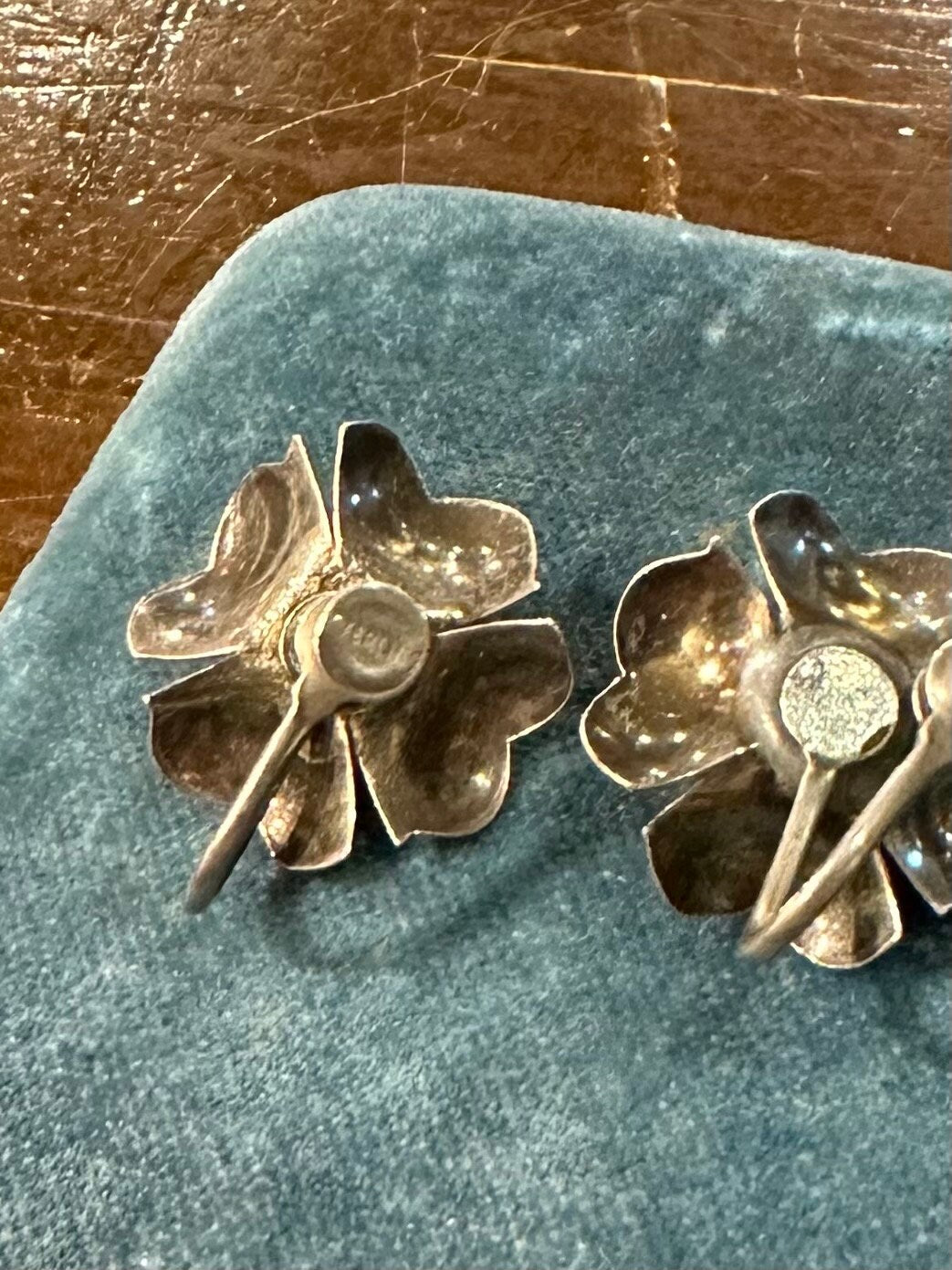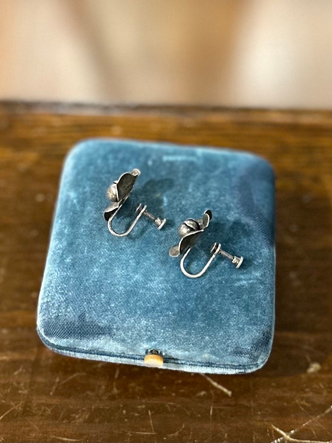 Vintage Midcentury Sterling Silver Floral Flower Screw Back Earrings