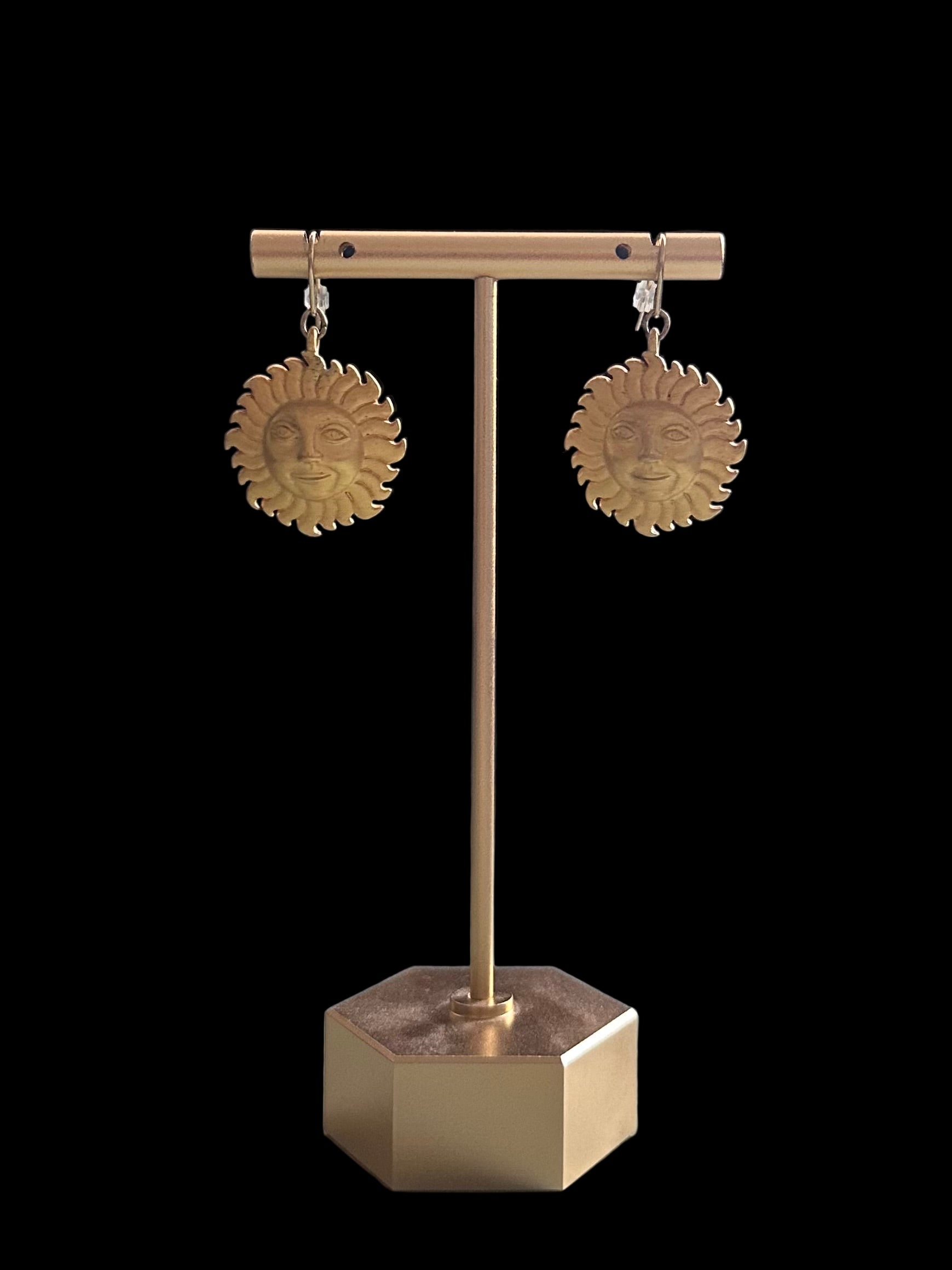 Each earring measures approximately 1.5 inches long (frop top of ear wire to bottom of earring). Sun has a diameter of approximately 0.95 inch.