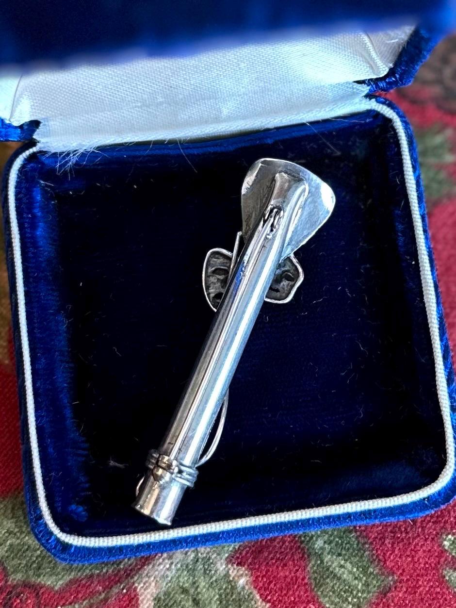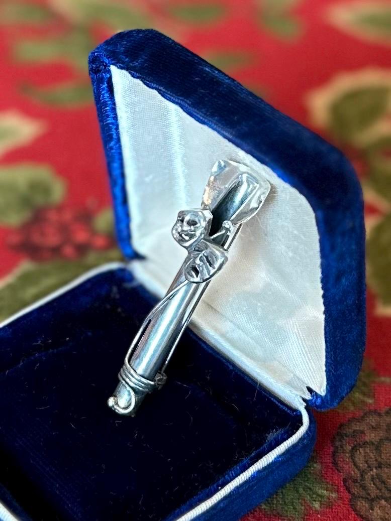 Vintage Signed REO Sterling Silver Comedy & Tradegy Drama Masks Cylindrical Flower Holder Brooch Pin Theater Boutonnière