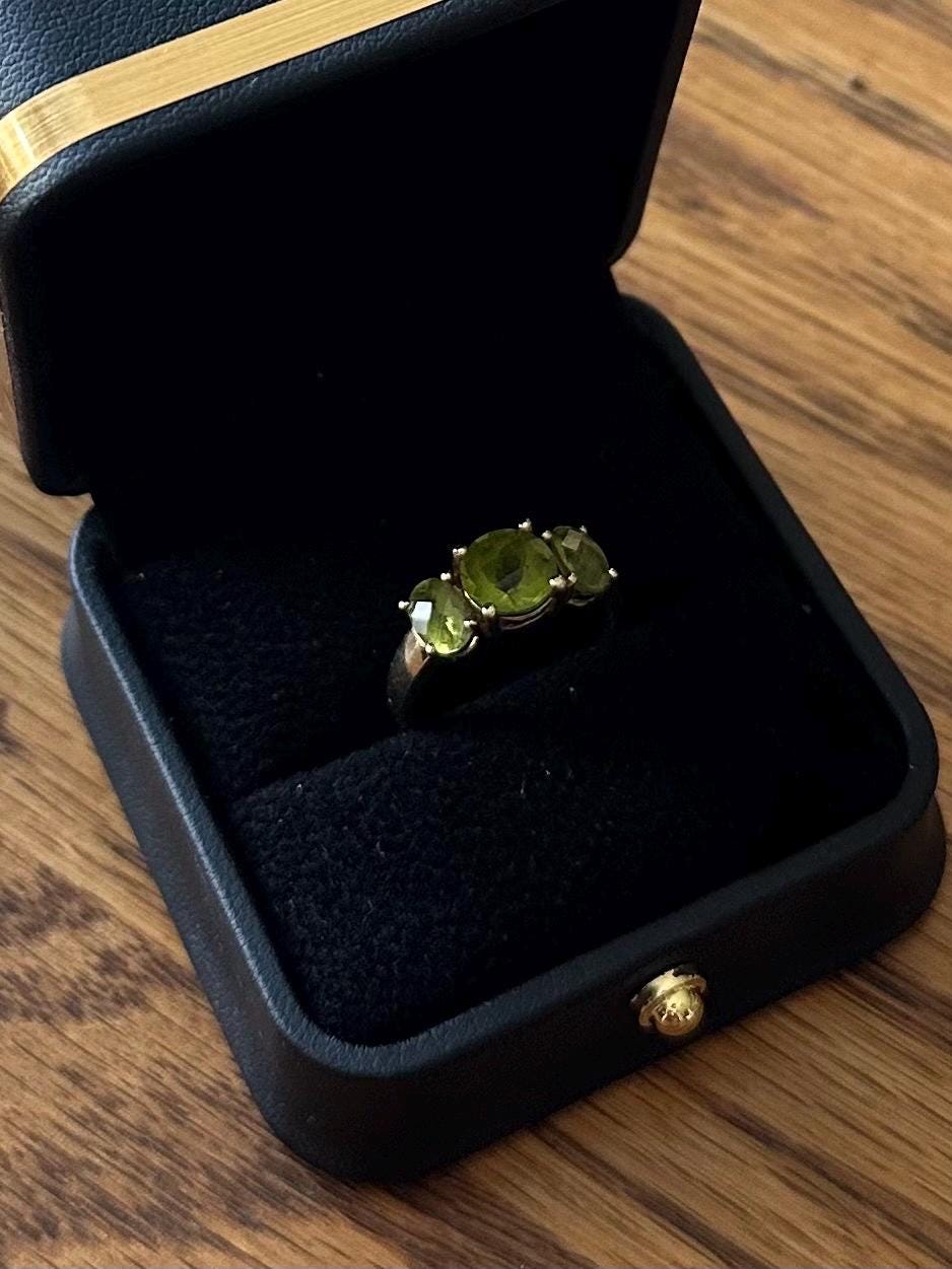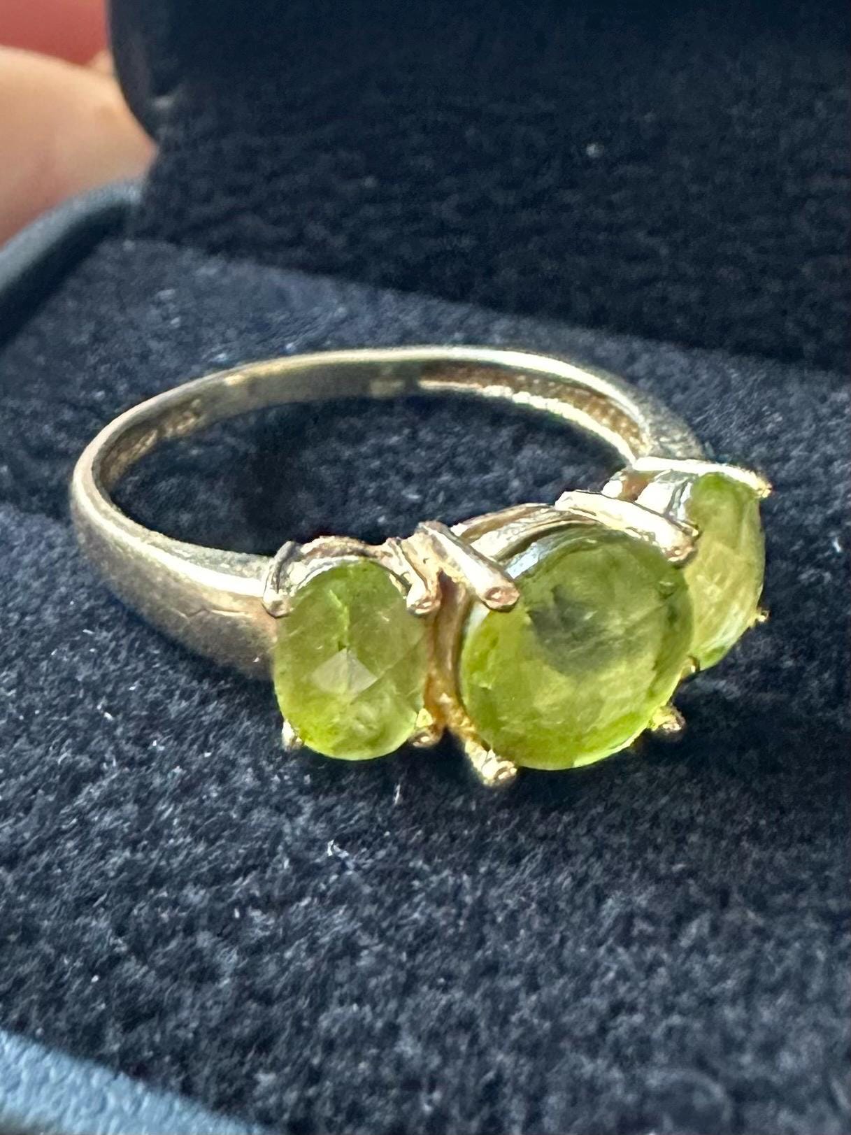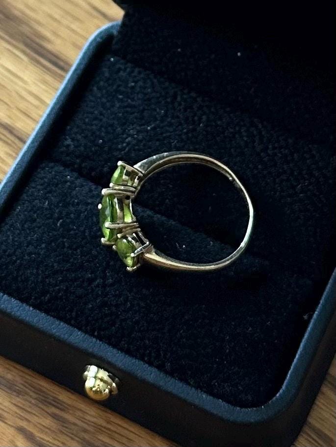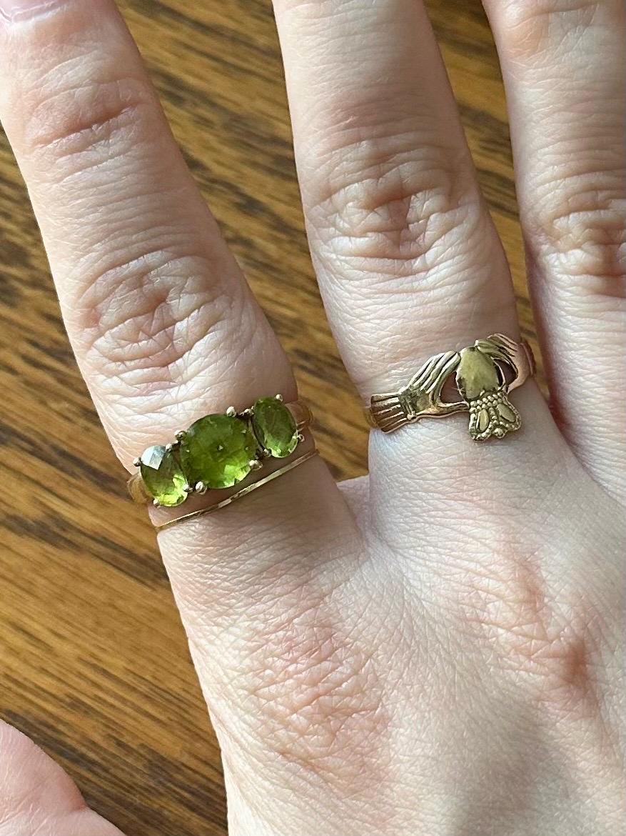 Vintage Solid 10K Yellow Gold & Faceted Green Peridot Ring US Size 6 3/4
