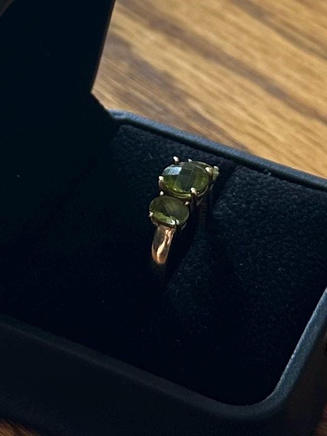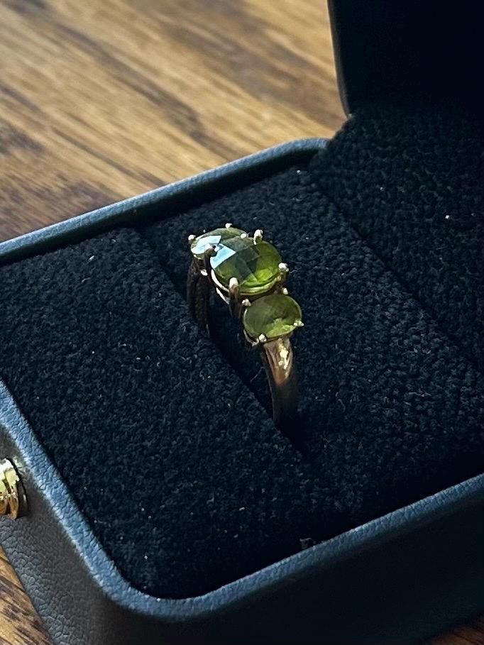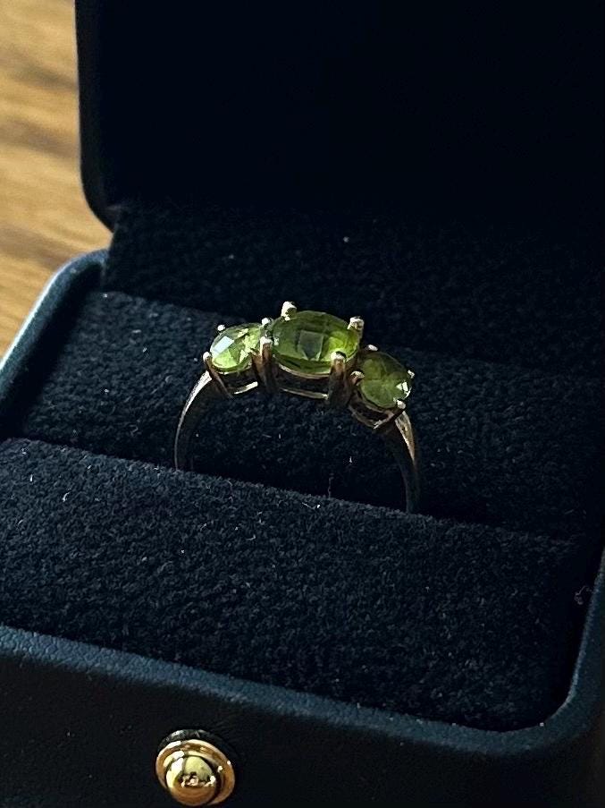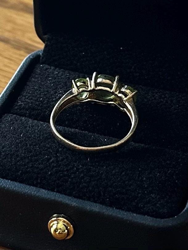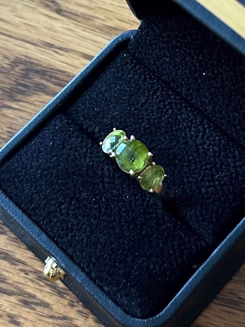 Vintage Solid 10K Yellow Gold & Faceted Green Peridot Ring US Size 6 3/4