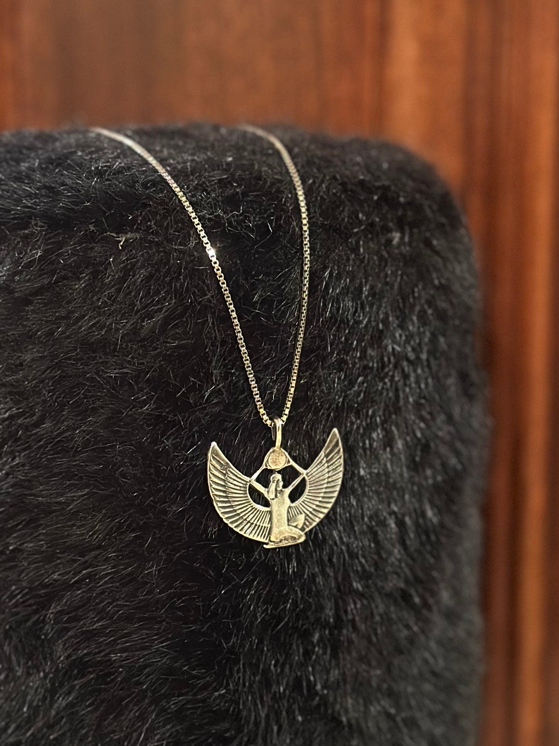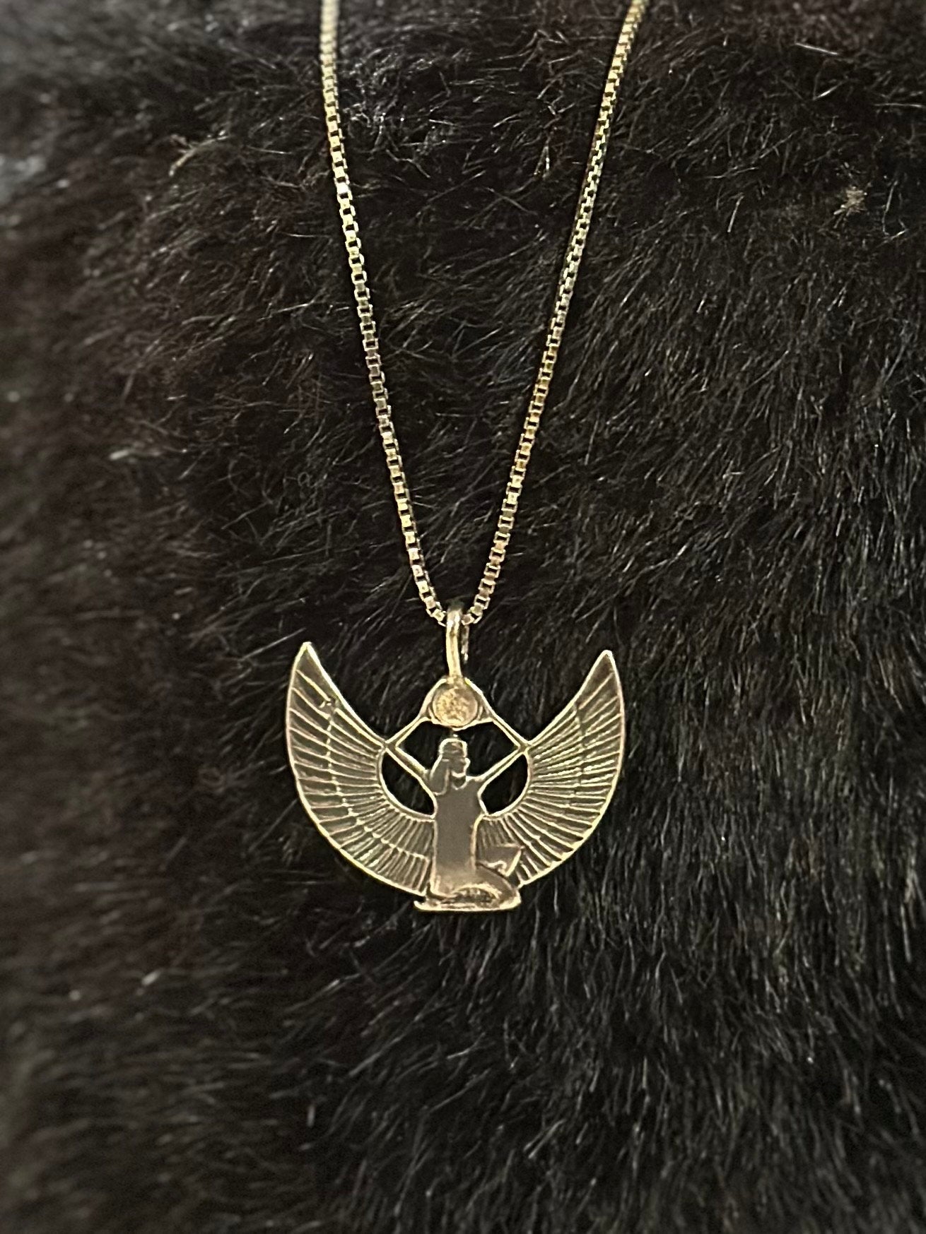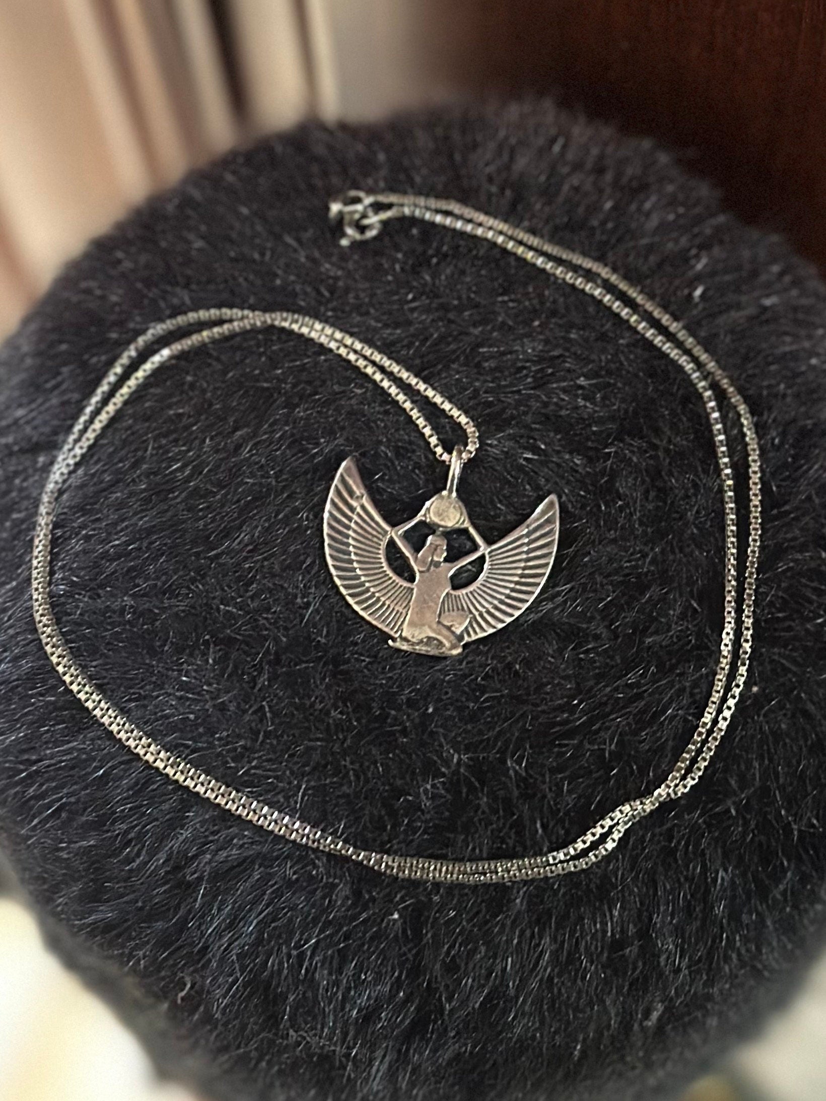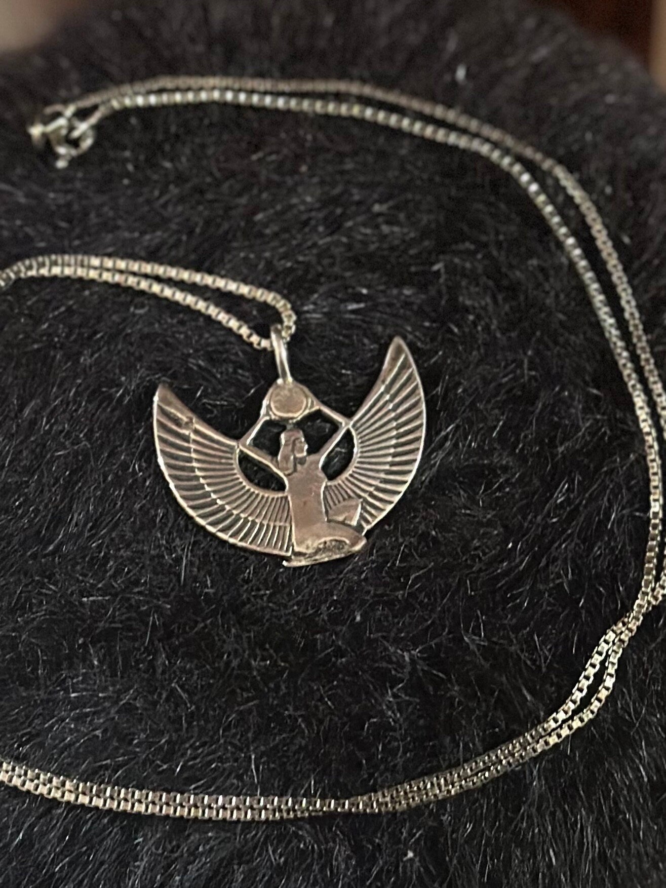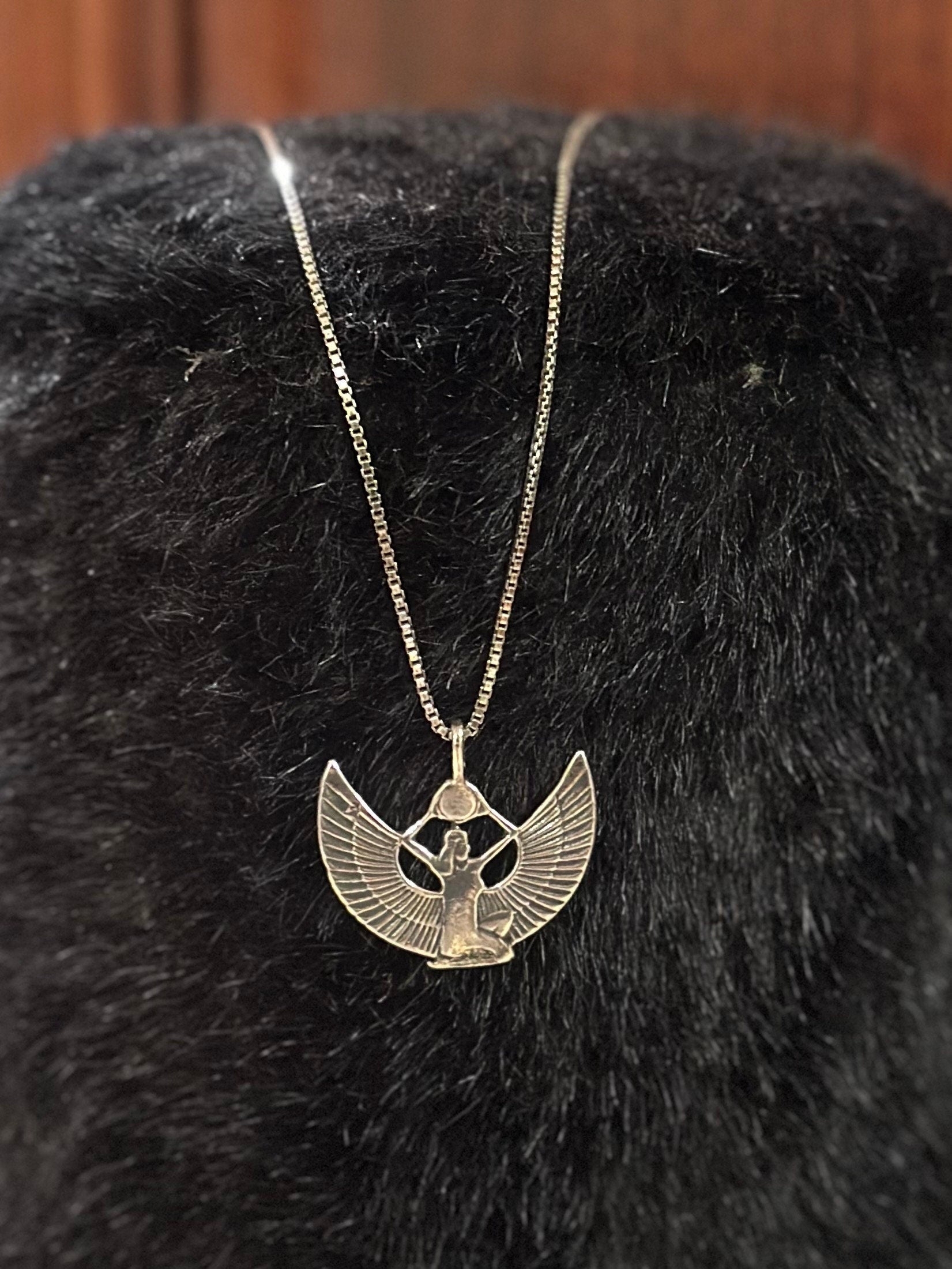 Vintage Sterling Silver Egyptian Revival Isis Goddess Pendant Necklace