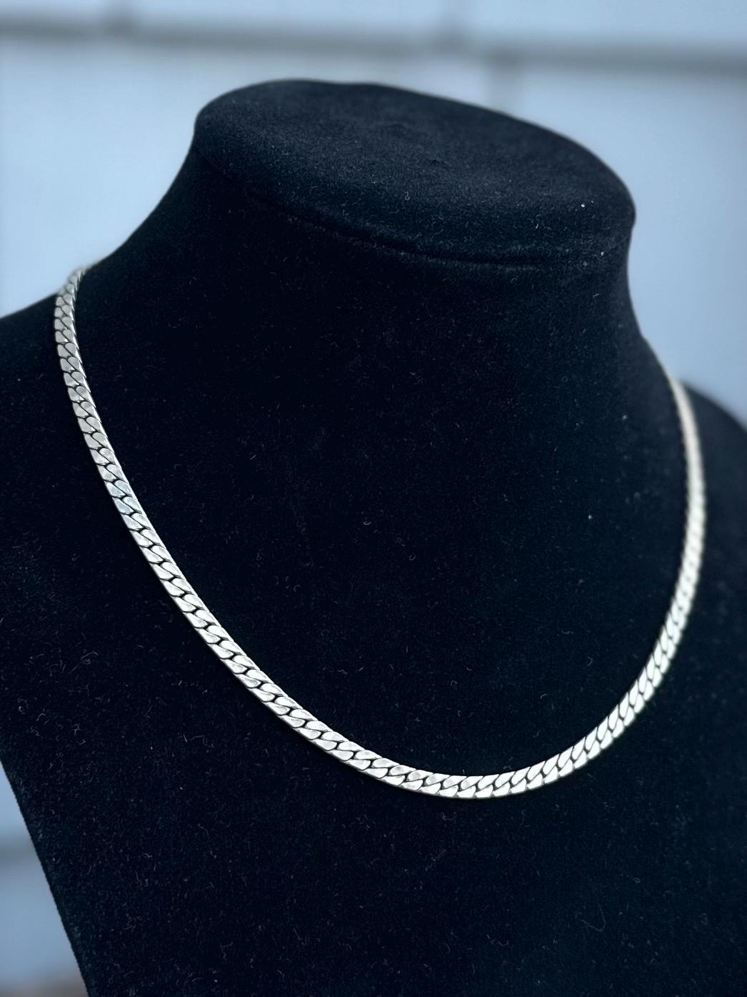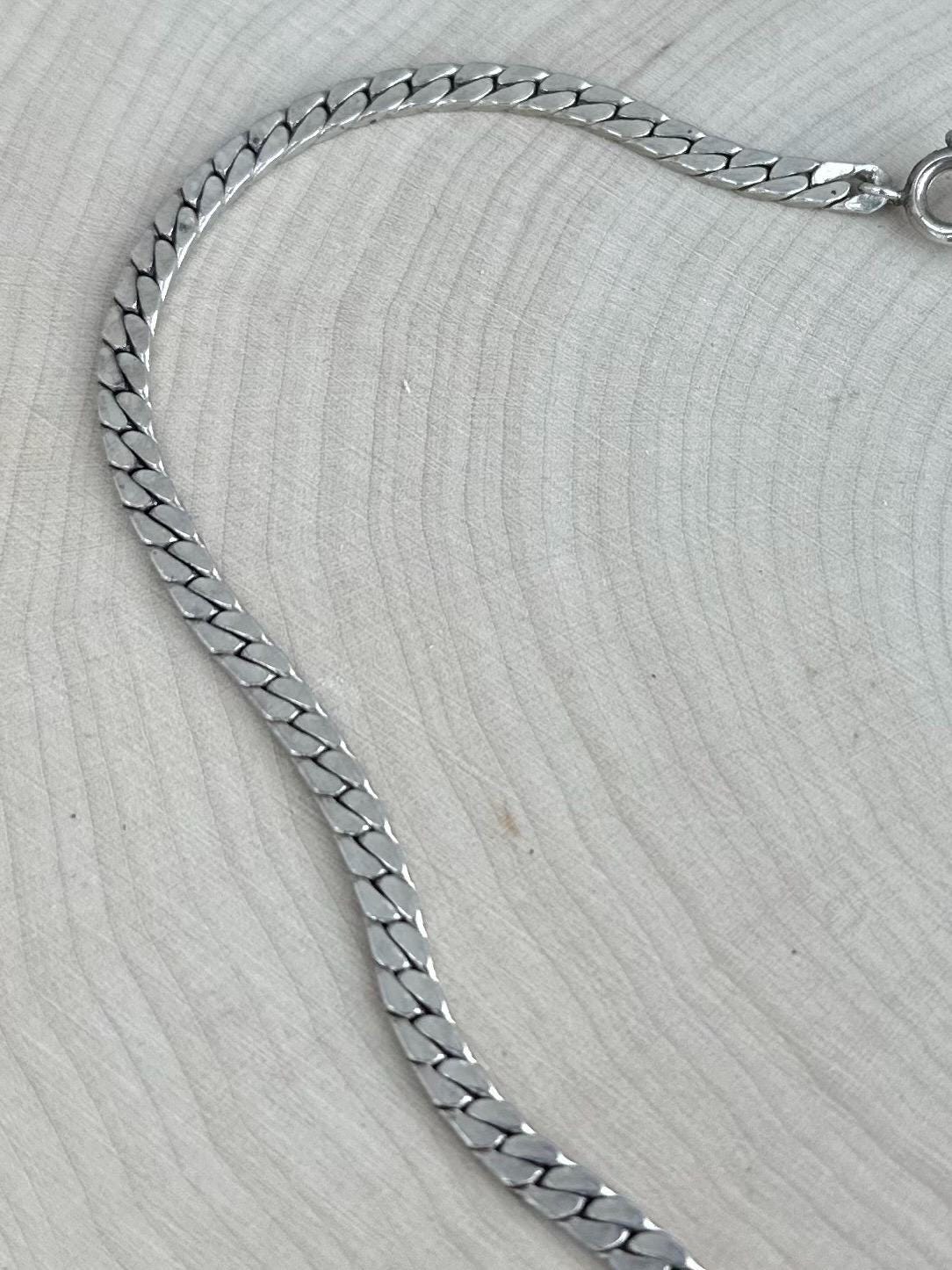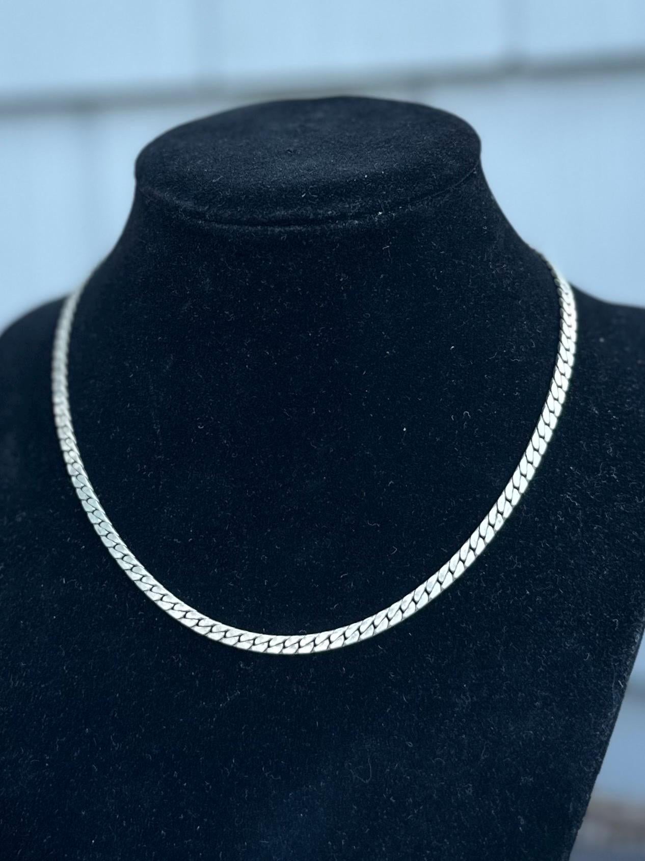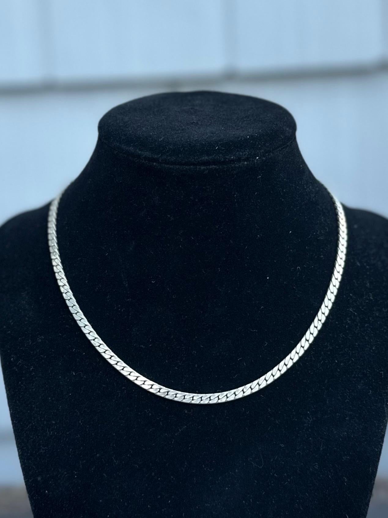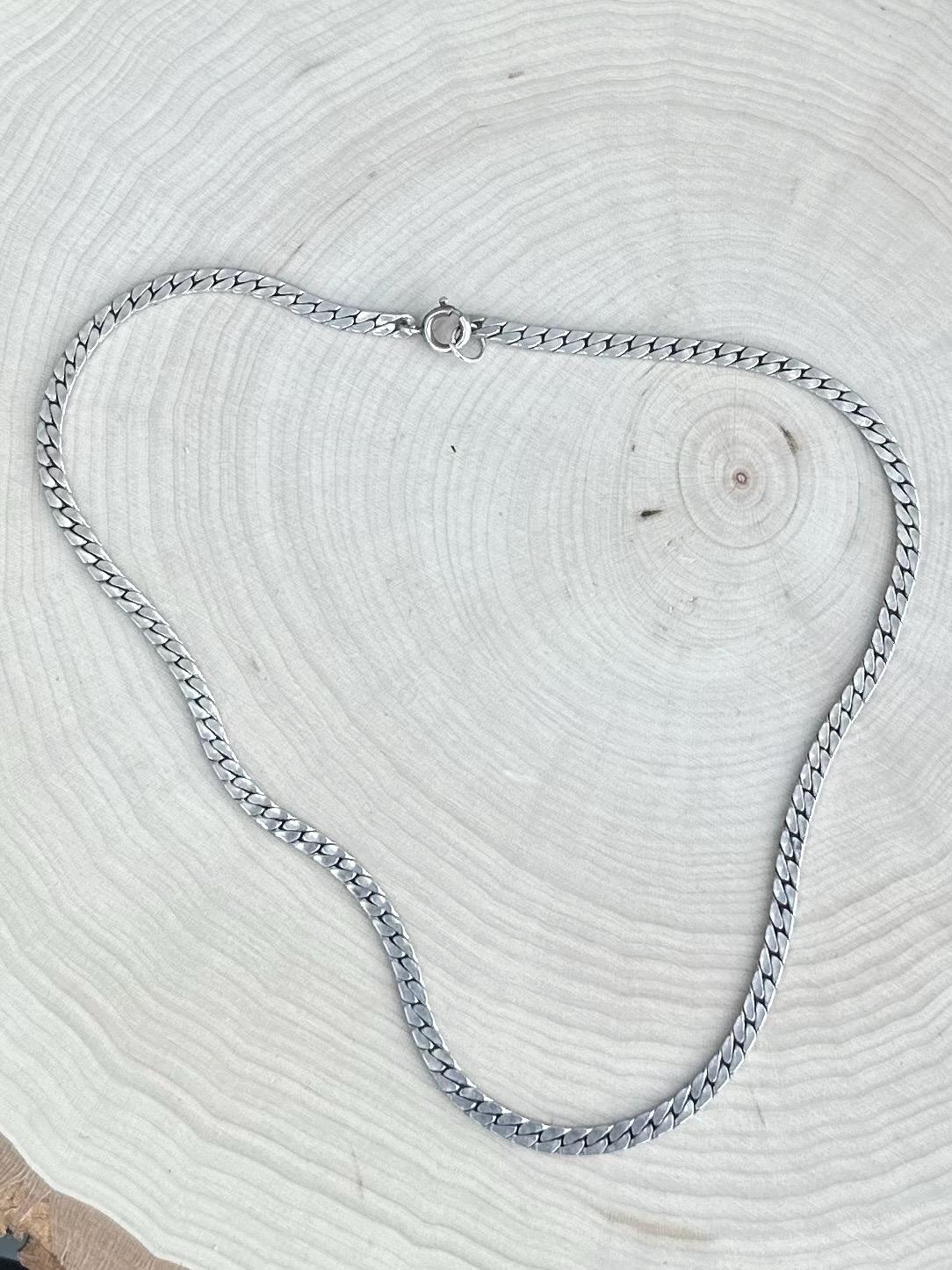 Vintage Sterling Silver Flat Curb Chain Cuban Chain 14.75” 14.37g